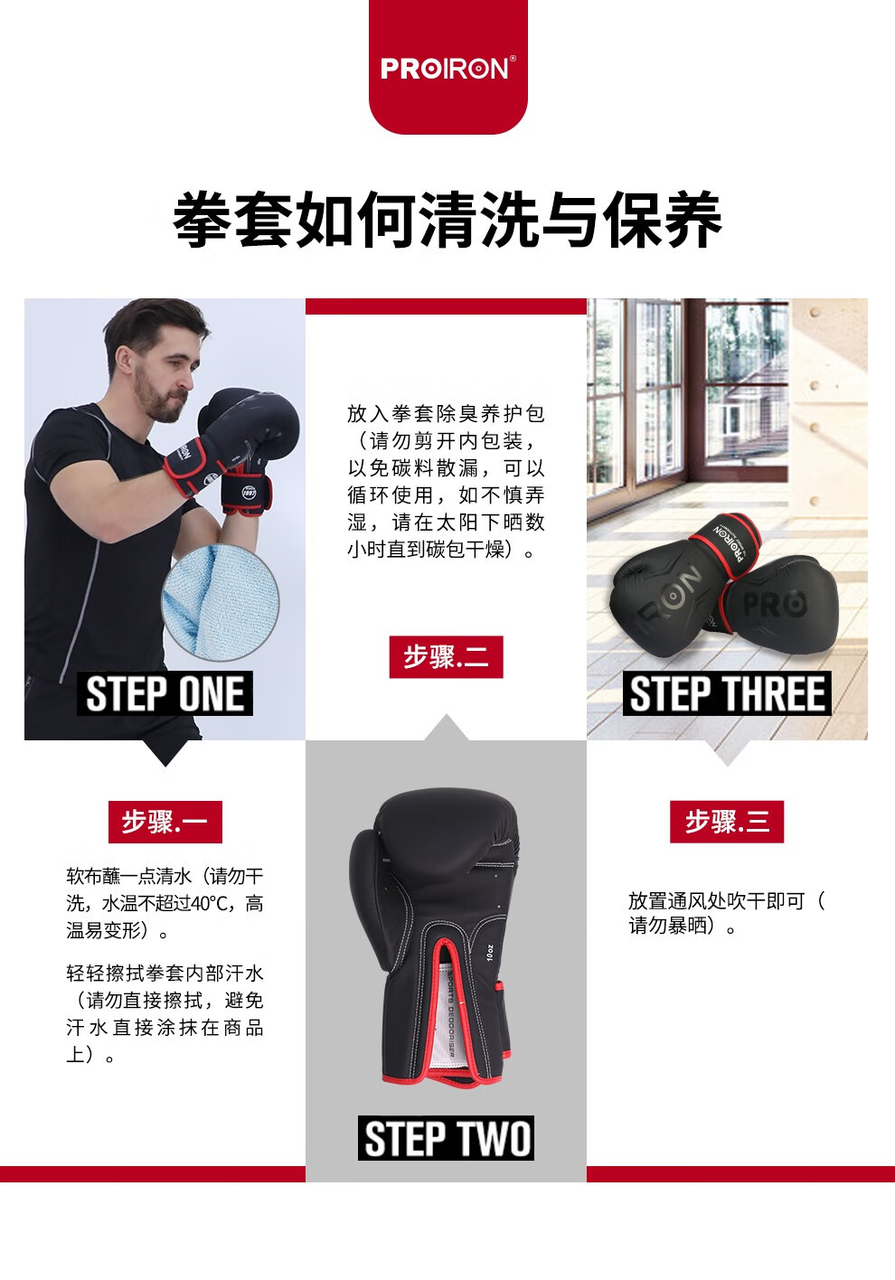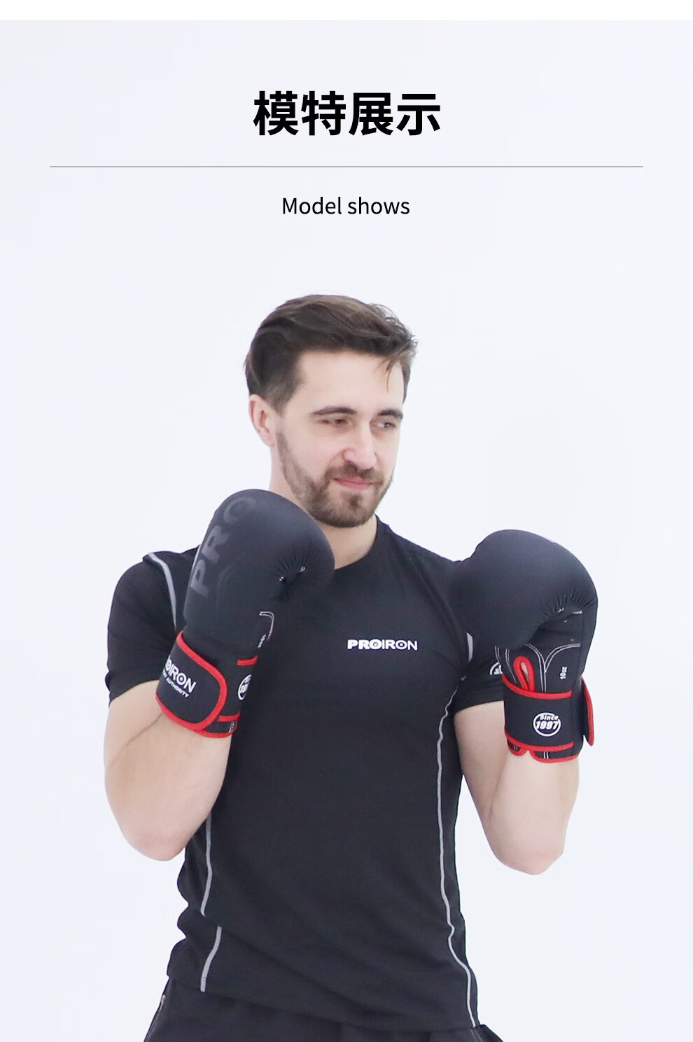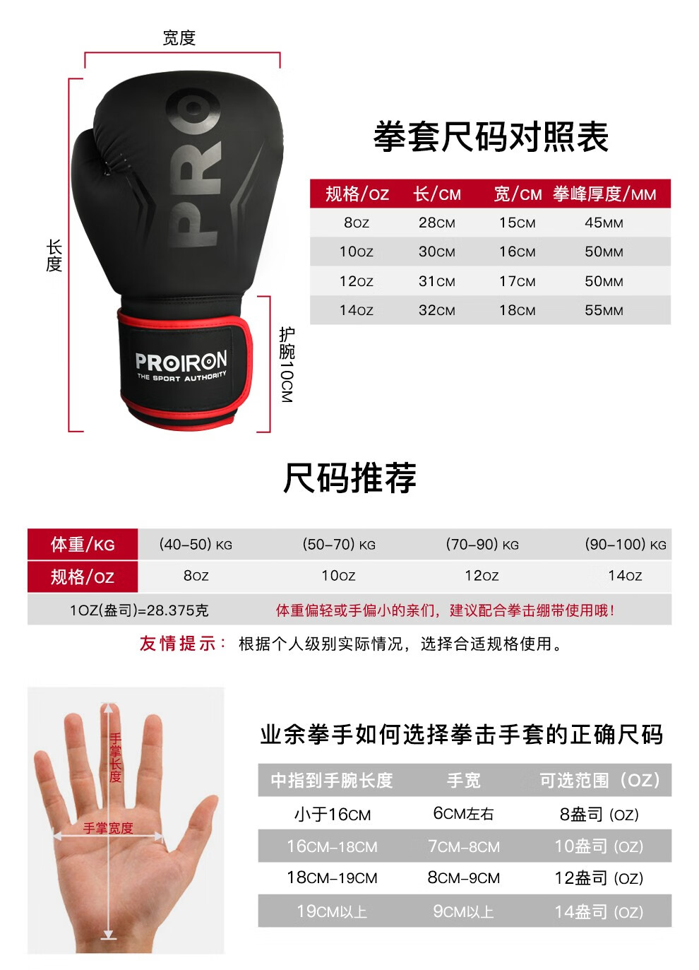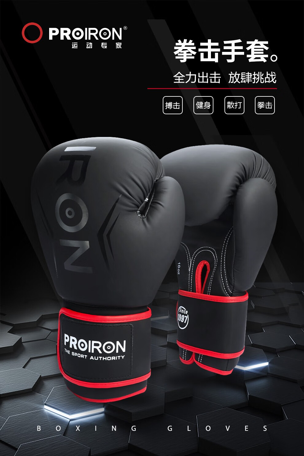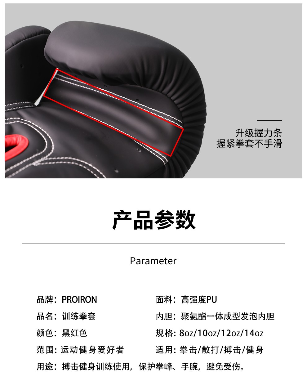 普力艾(PROIRON) 拳击手套 PRO-QJST02-3 12oz【推荐体重70-90KG】一副 黑色(单位:副)