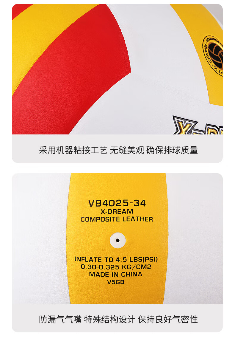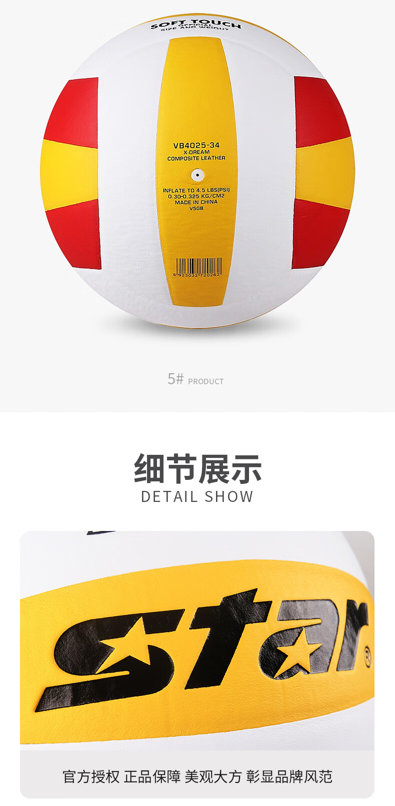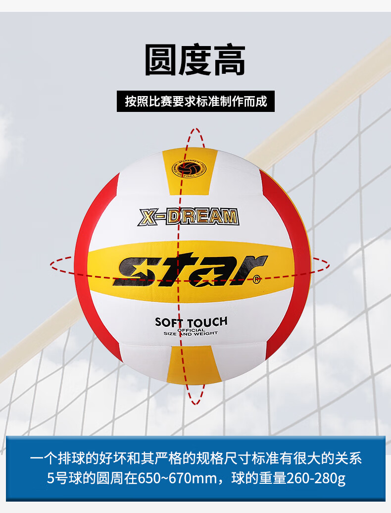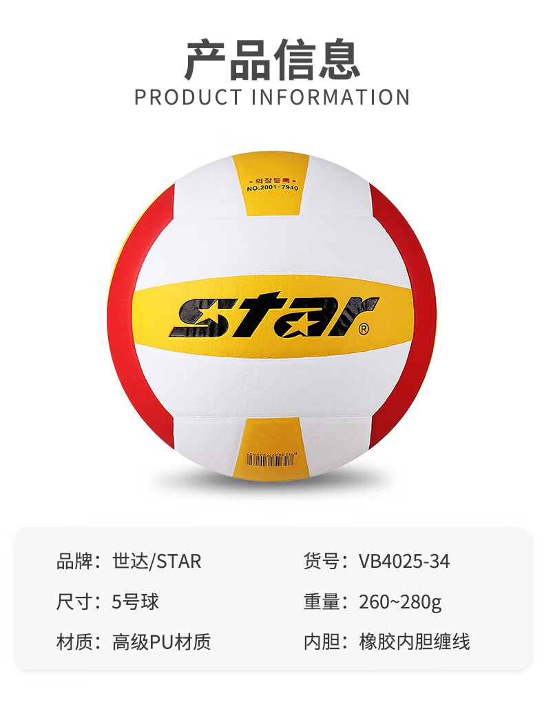 世达(star) 排球软式PU标准比赛用球 VB4025-34 5号 混色(单位:个)