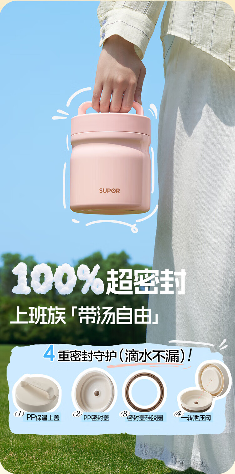 苏泊尔(SUPOR) 超强锁温保温便当盒 KCV10DY10 1.0L 珍珠白(单位:个)