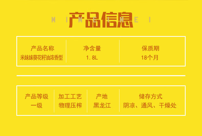 米妹妹(MIMEIMEI) 食用油 浓香型葵花籽油 1.8L/桶 混色(单位:桶)