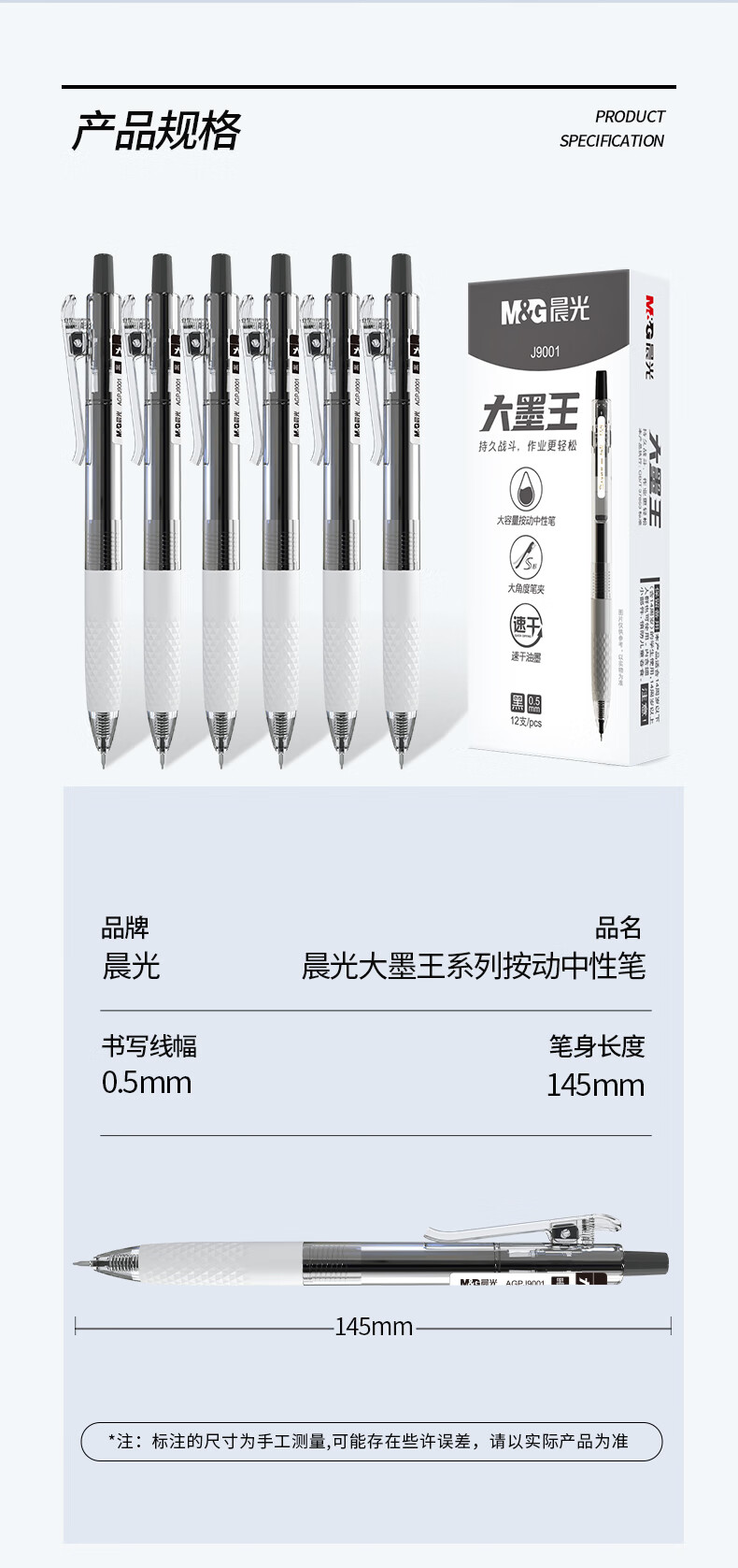 晨光(M&G) 按动中性笔大墨王 AGPJ9001A 0.5mm 12支/盒 黑色(单位:盒)