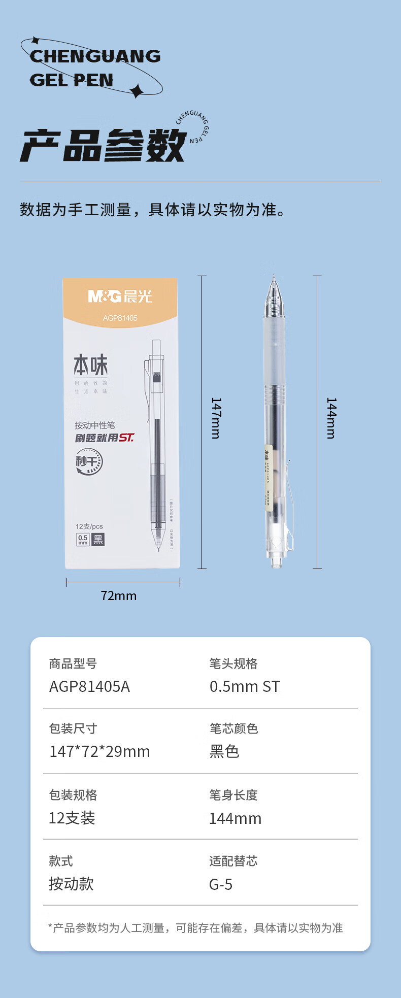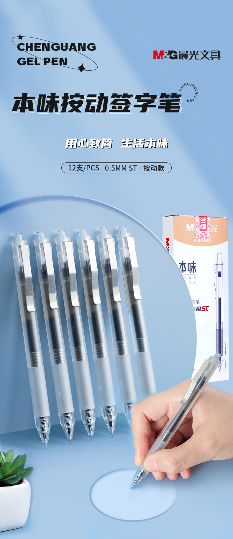 晨光(M&G) 按动中性笔本味 AGP81405 0.5mm 12支/盒 黑色(单位:盒)