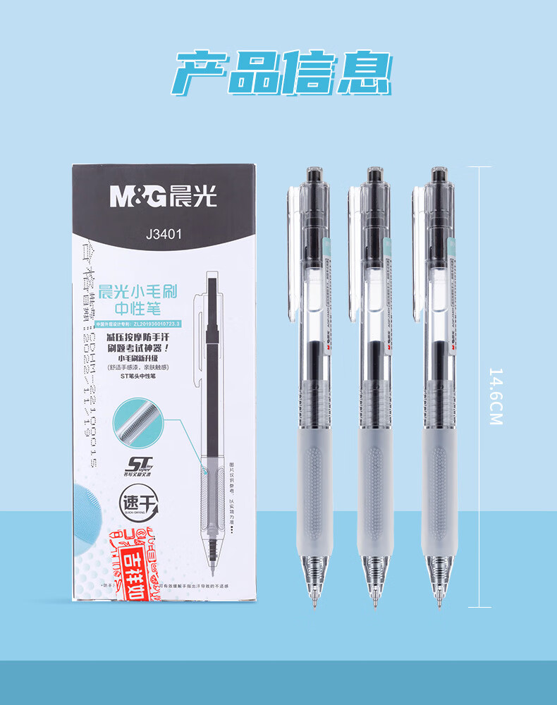 晨光(M&G) 按动中性笔小毛刷 AGPJ3401 0.5mm 12支/盒 黑色(单位:盒)