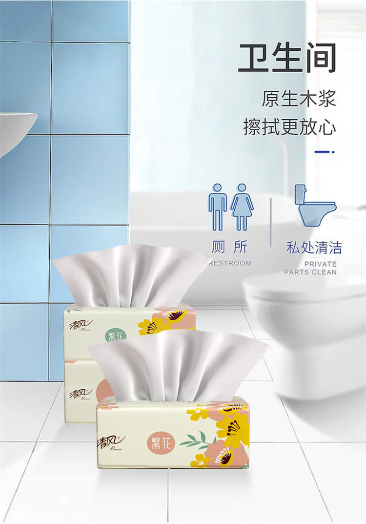 清风(QINGFENG)软抽纸 繁花系列 3层100抽( 单位:提) 6包