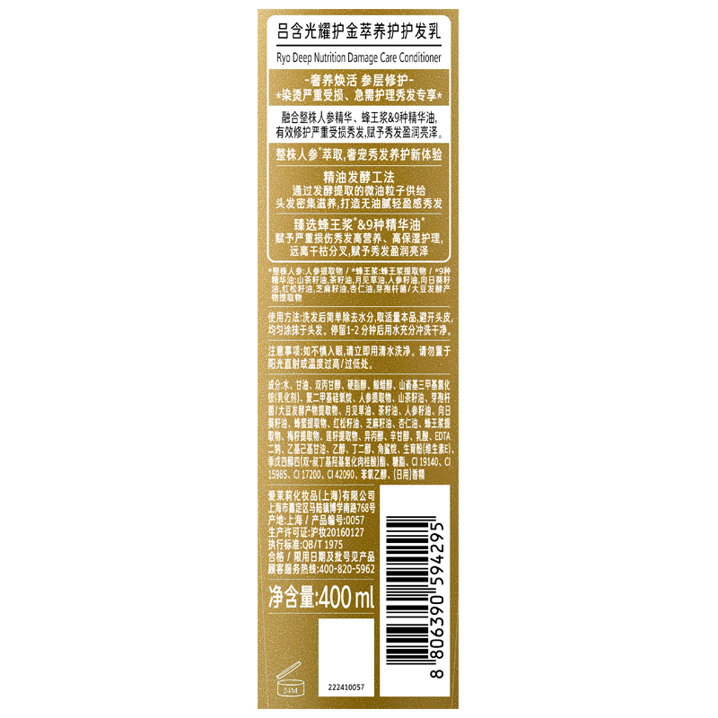 吕(Ryo)护发素金吕烫染呵护精油润养护发素400ml(单位:瓶) 金吕护发素400ml