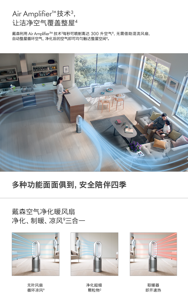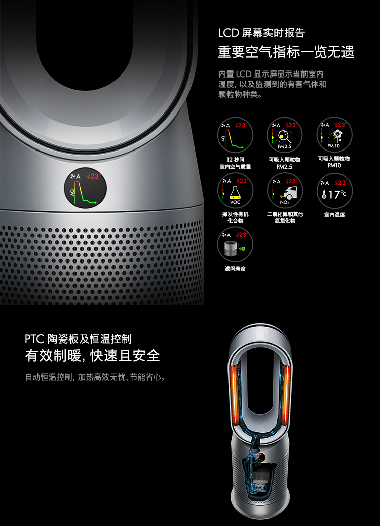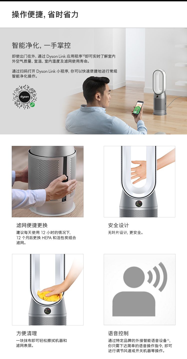 戴森 DYSON HP07 除菌除甲醛空气净化暖风扇 兼具空气净化器暖风扇功能 整屋循环净化 台 银白色