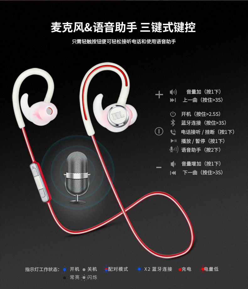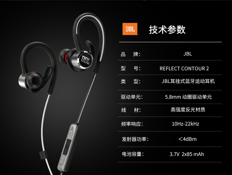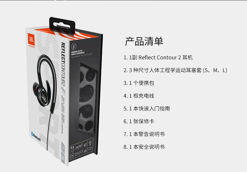 JBL Reflect Contour2 蓝牙耳机挂脖式无线运动耳机防水防汗 单位:个 红色