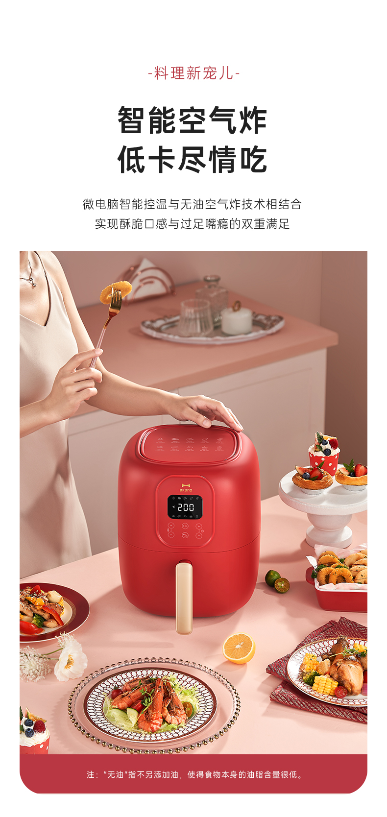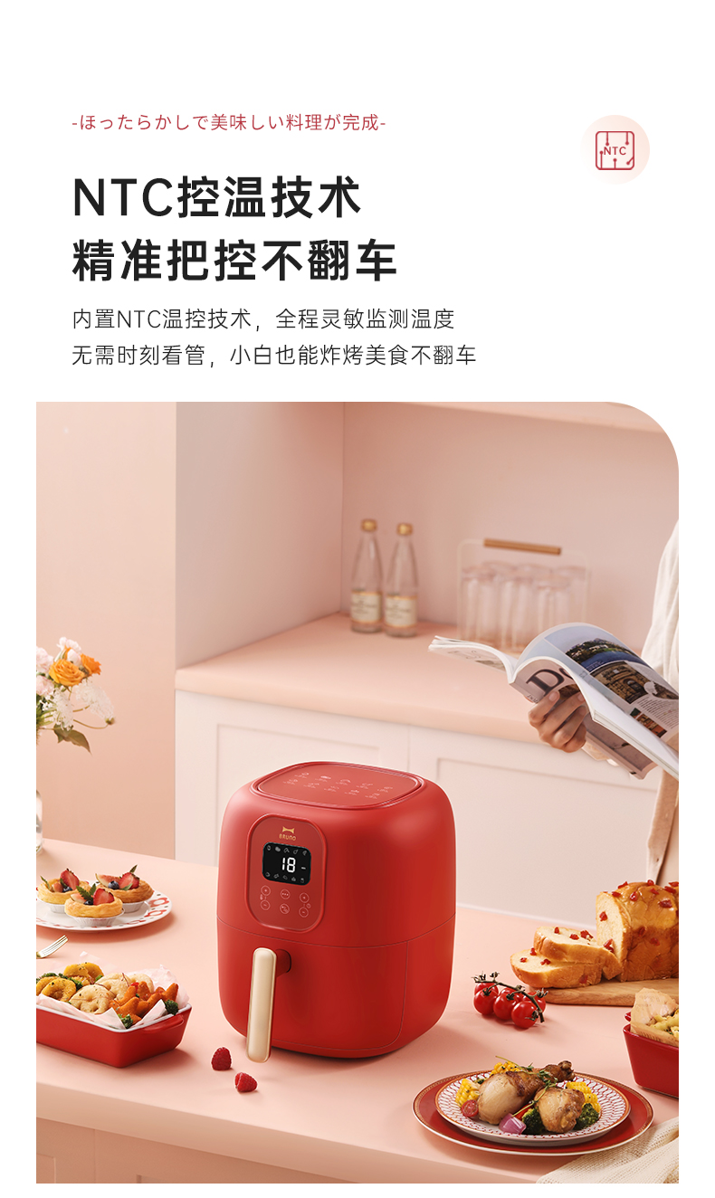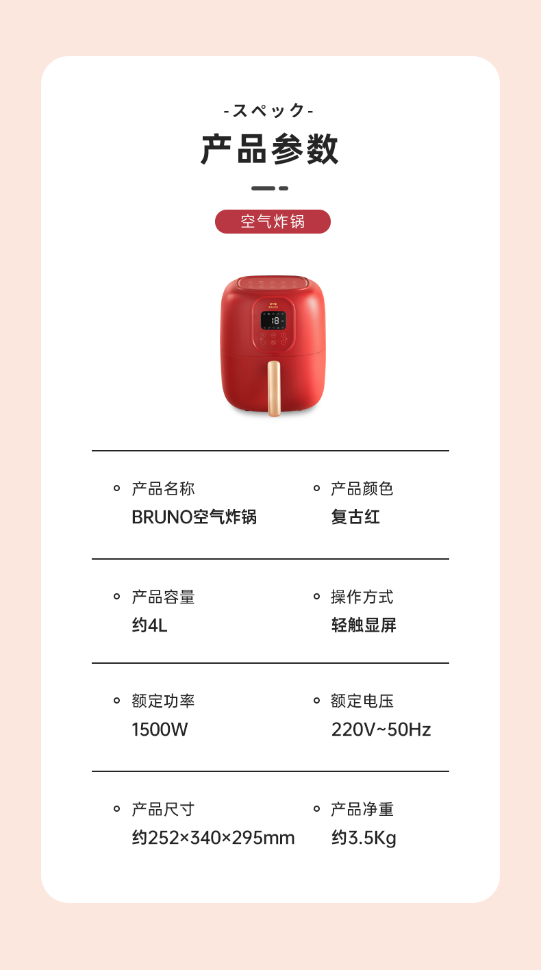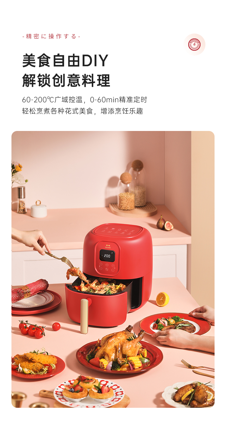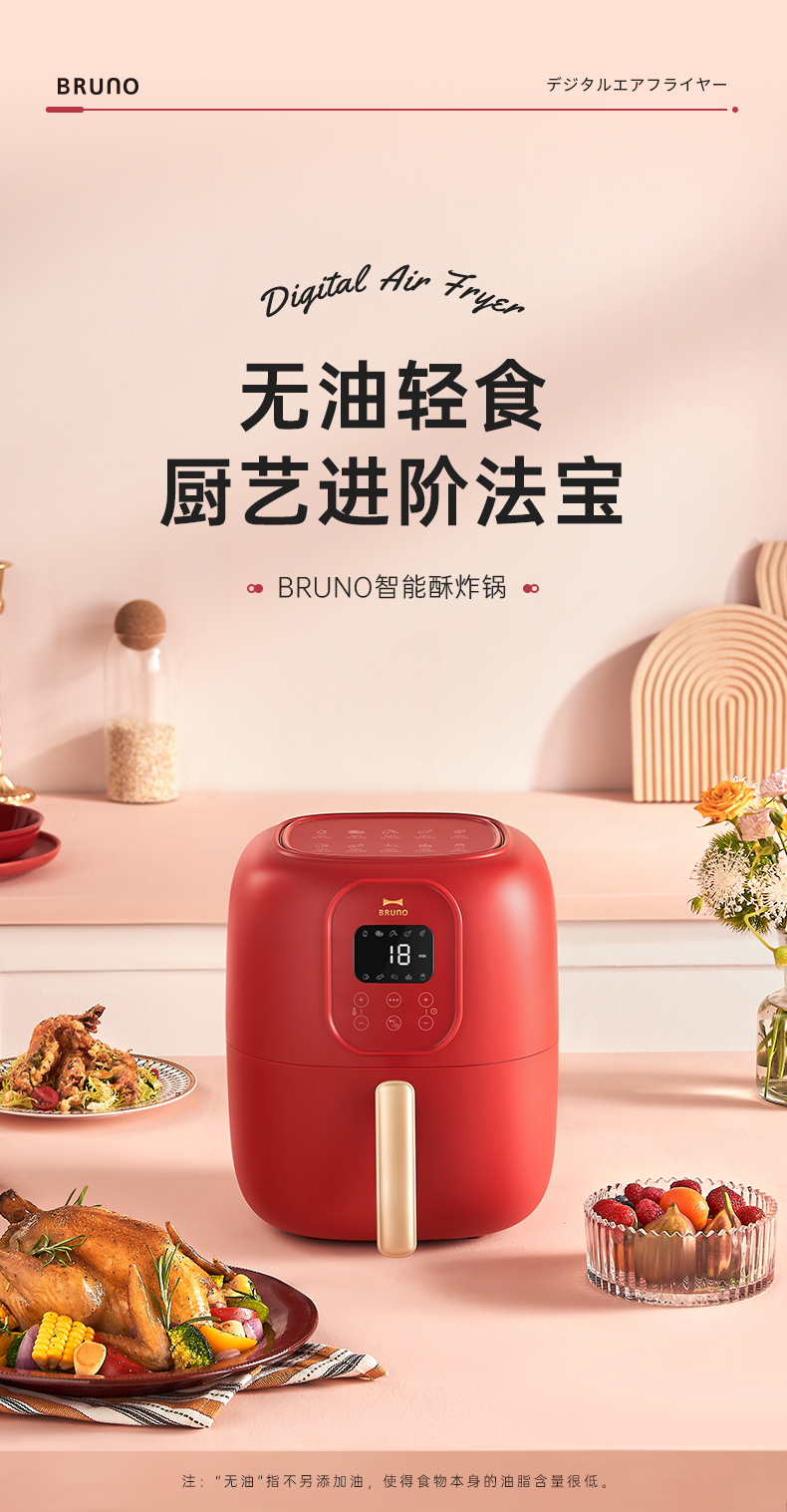 BRUNO 空气炸锅 多功能锅 大容量 4L BZK-KZ07/台 复古红