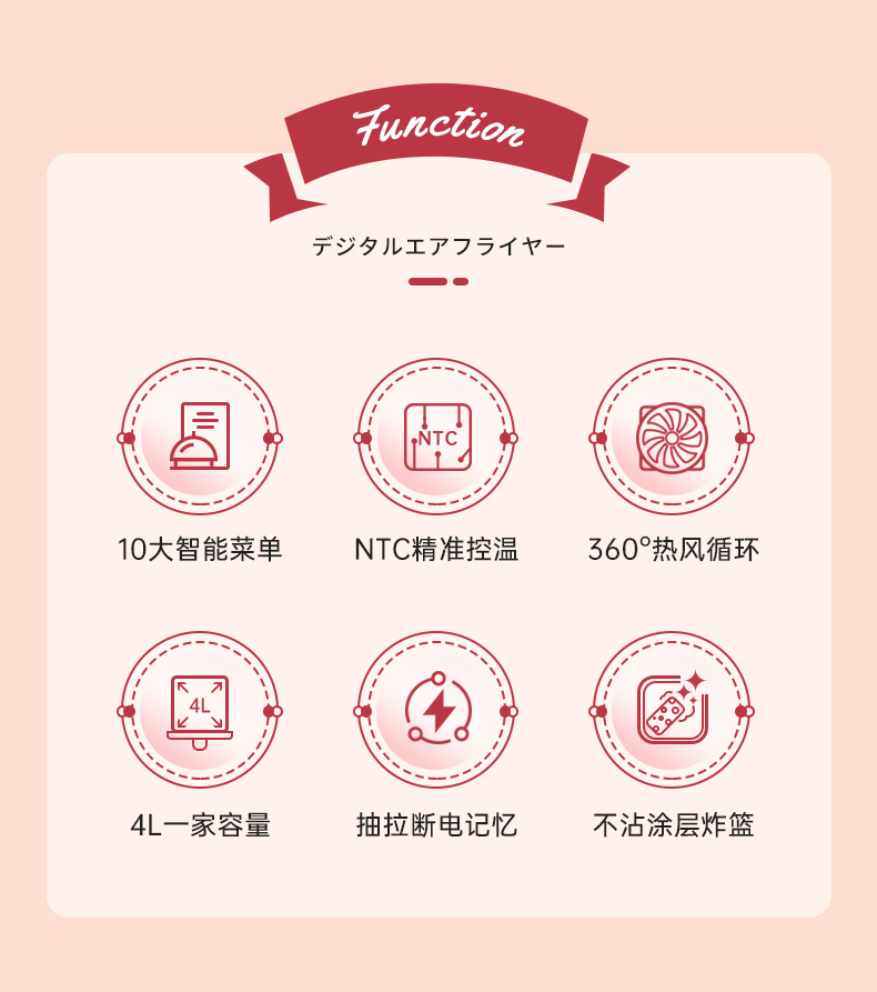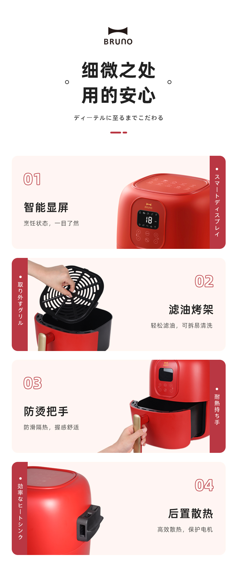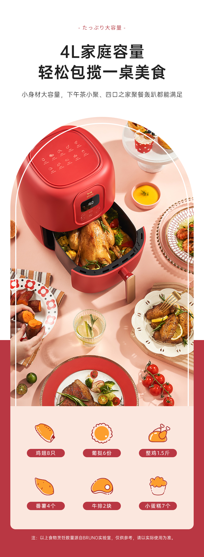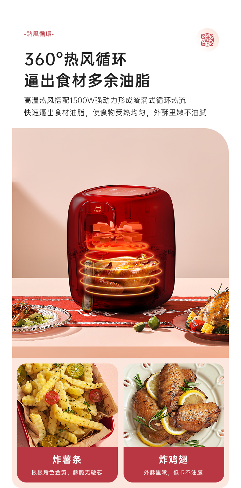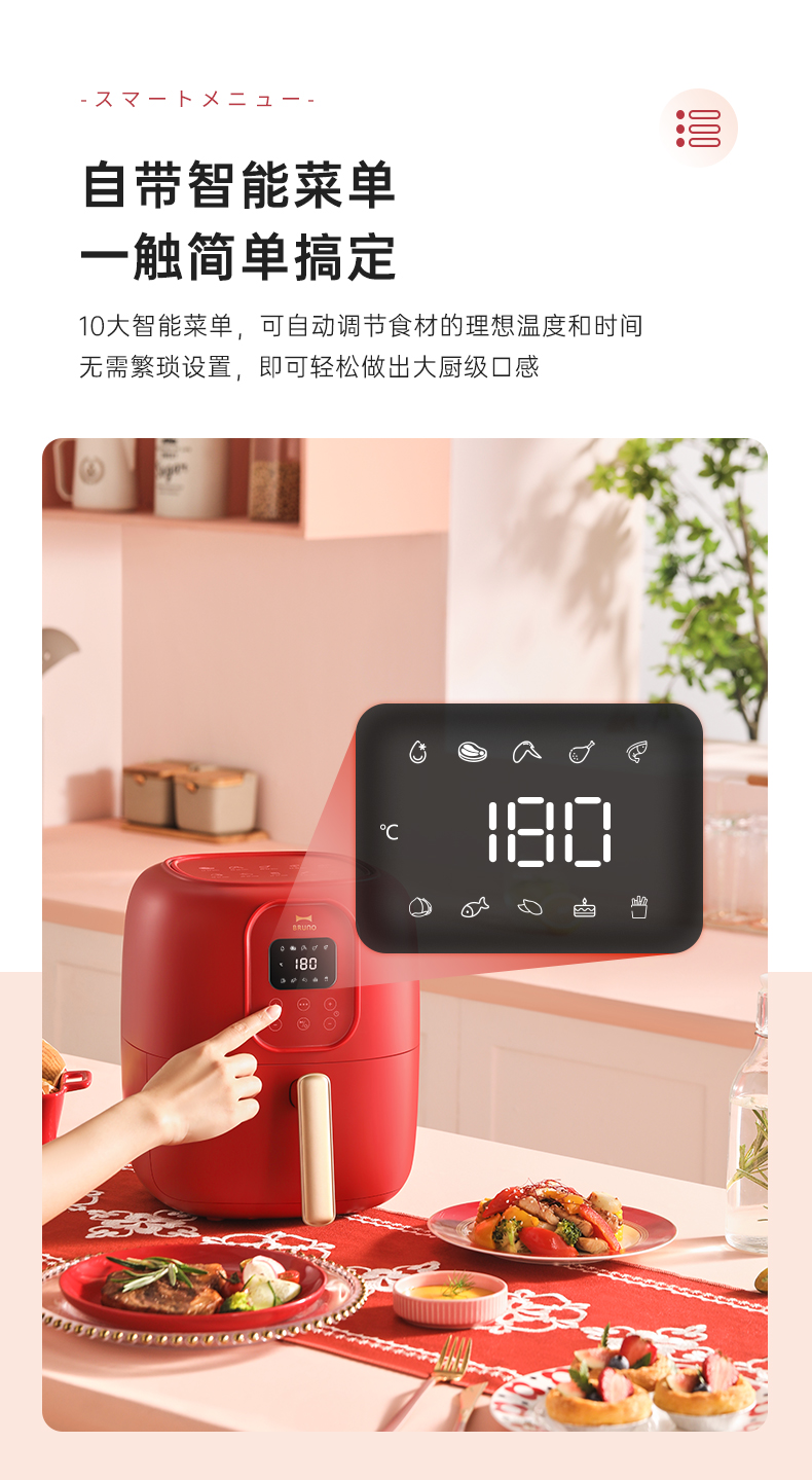 BRUNO 空气炸锅 多功能锅 大容量 4L BZK-KZ07/台 复古红