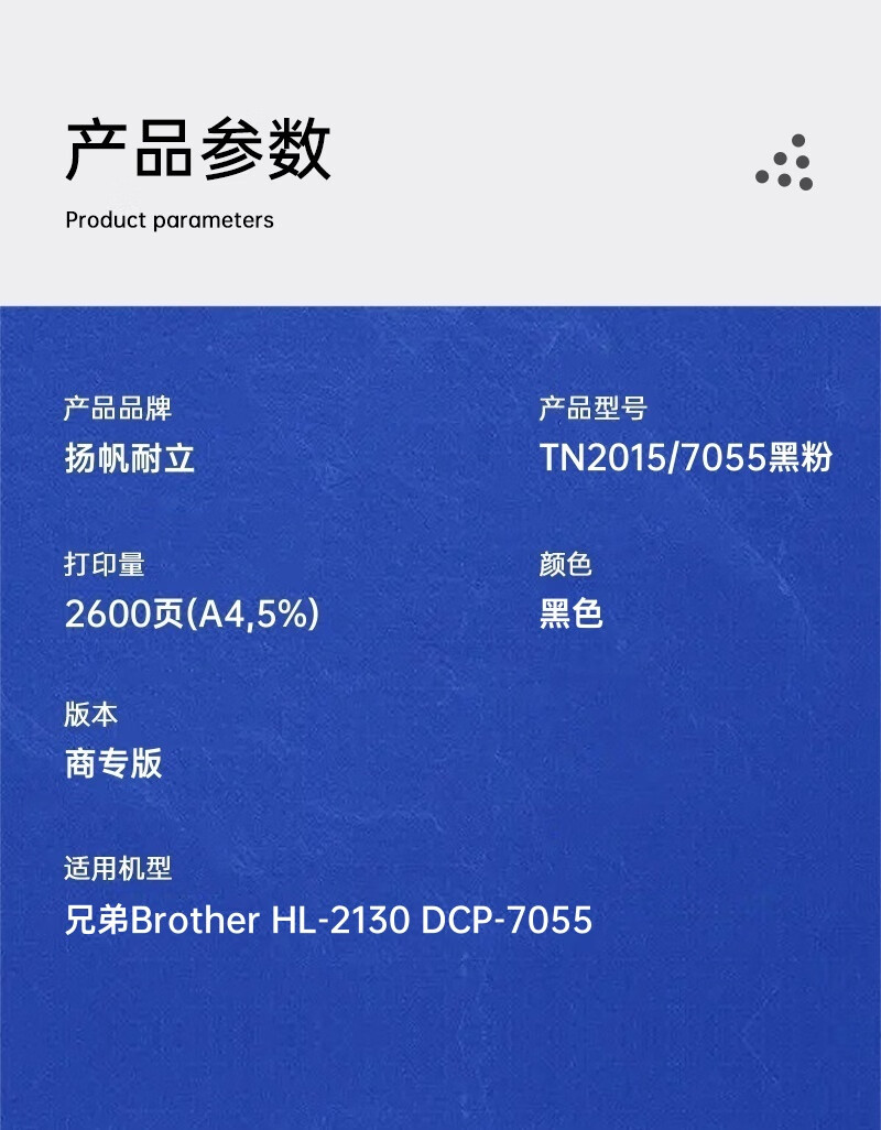 扬帆耐立(YFHC) TN2015/7055 适用兄弟Brother HL-2130 DCP-7055 商专版 2600页 粉盒 (计价单位:只) 黑色