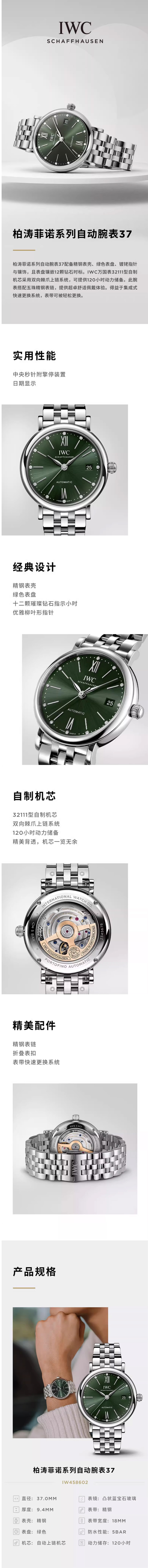 IWC万国 柏涛菲诺系列机械手表女表 IW458602(单位1块) 绿色