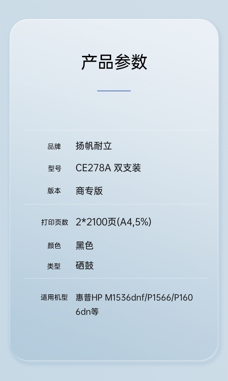 扬帆耐立(YFHC) CE278A 双支装 商专版 适用惠普P1566 硒鼓 2.00 只/组 (计价单位:组) 黑色