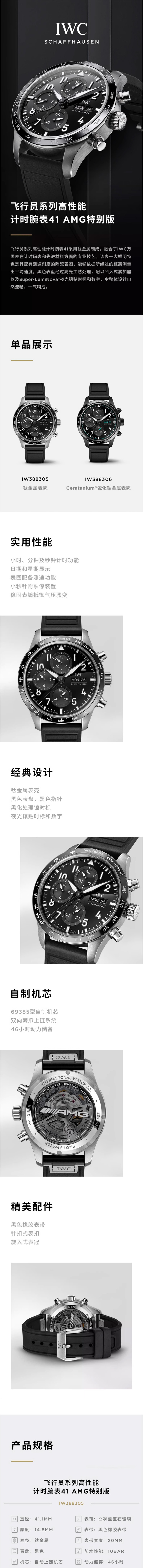 IWC万国 飞行员系列高性能计时机械手表男表 AMG特别版 IW388305(单位1块) 黑色
