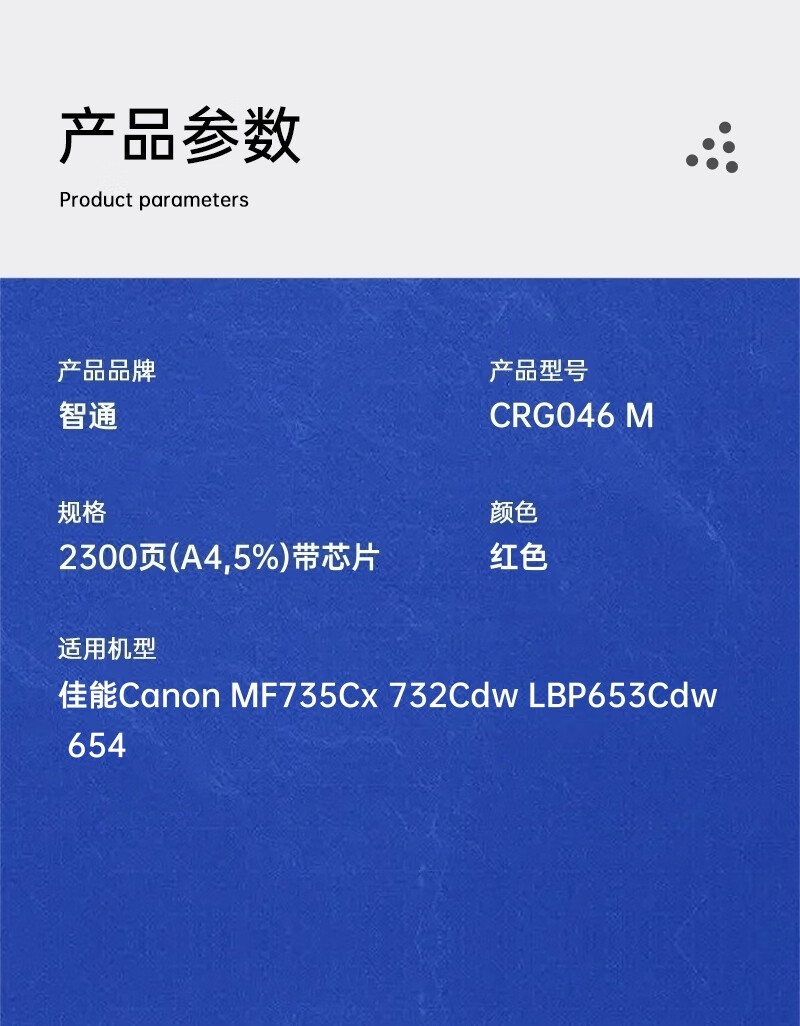智通(ZT) CRG046 M 带芯片 2300页 适用佳能Canon MF735Cx 732Cdw LBP653Cdw 654 硒鼓 1.00 只/个 (计价单位:个) 红色
