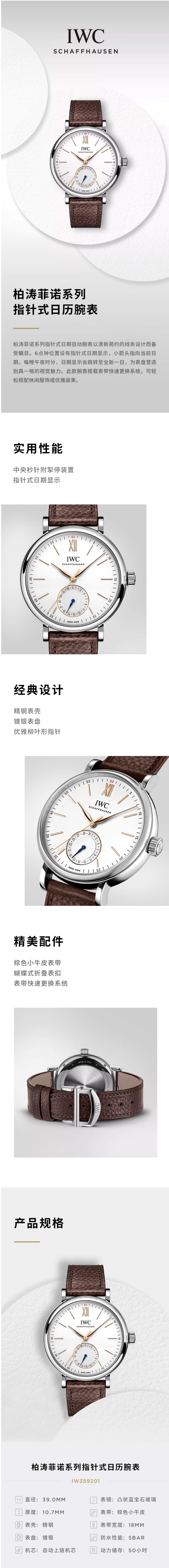 IWC万国 柏涛菲诺系列指针式日期手表男表 IW359201(单位1块) 棕色