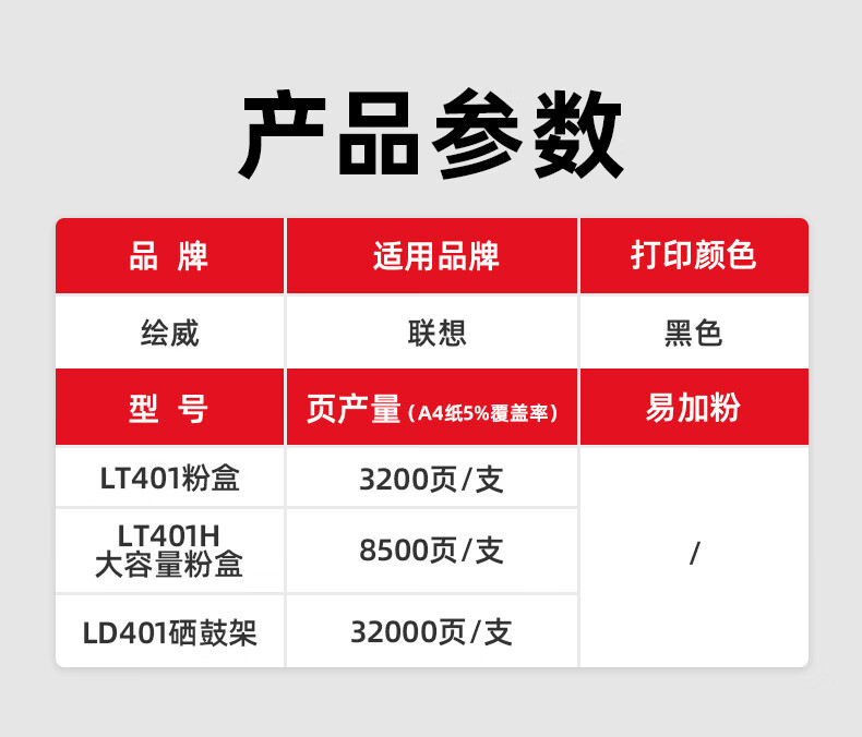 绘威 LT401H大容量粉盒 打印量8000页适用联想Lenovo LJ4000D LJ4000DN LJ5000DN 打印机墨粉盒 墨盒 硒鼓 1.00 只/个 (计价单位:个) 黑色