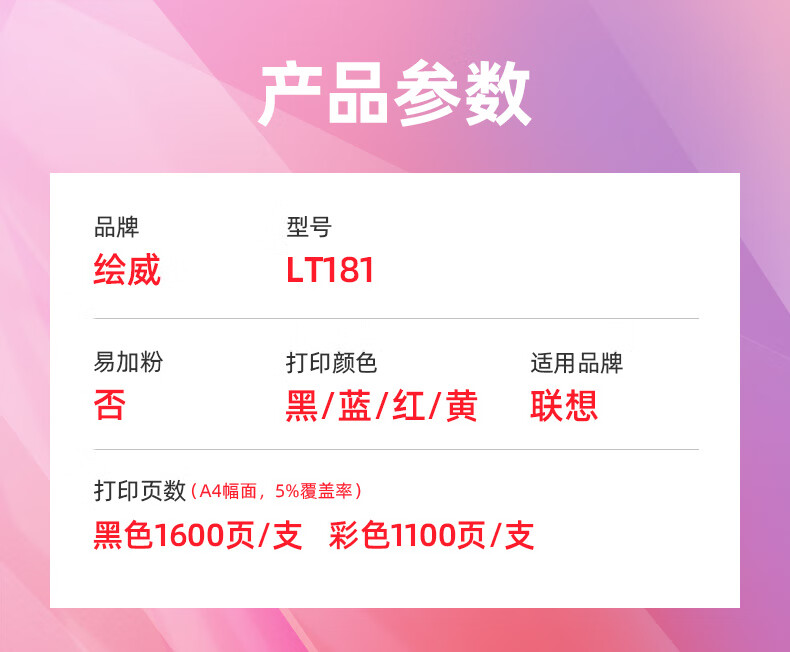 绘威 LT181黄色粉盒 打印量1000页适用联想Lenovo CS1811打印机墨盒 墨粉盒 碳粉盒 硒鼓 1.00 只/个 (计价单位:个) 黄色