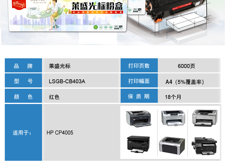 莱盛光标 LSGB-CB403A 约6000页 适用于HP CP4005 粉盒 1.00 只/支 (计价单位:支) 品红色