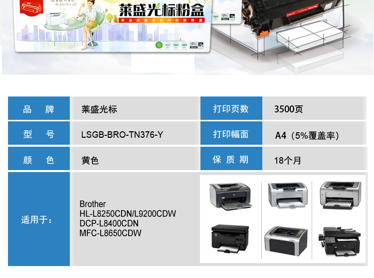 莱盛光标 LSGB-BRO-TN285-Y 2200页 墨粉盒 1.00 只/支 (计价单位:支) 黄色