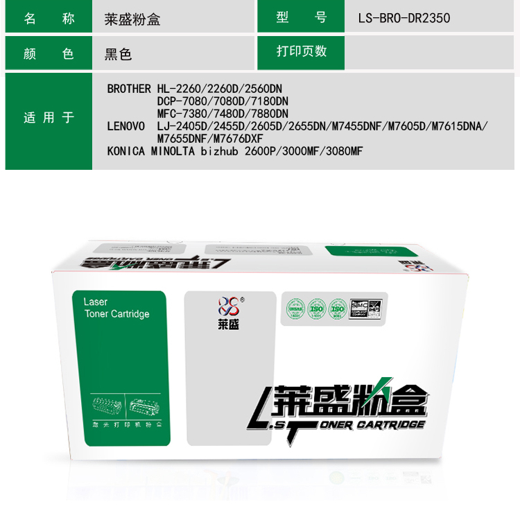 莱盛(laser) LS-XER-CT351056-U 粉盒 适用于 施乐XEROX DocuPrint P228db/P268b/P268d/P268dw 鼓体单元 (计价单位:只) 黑色