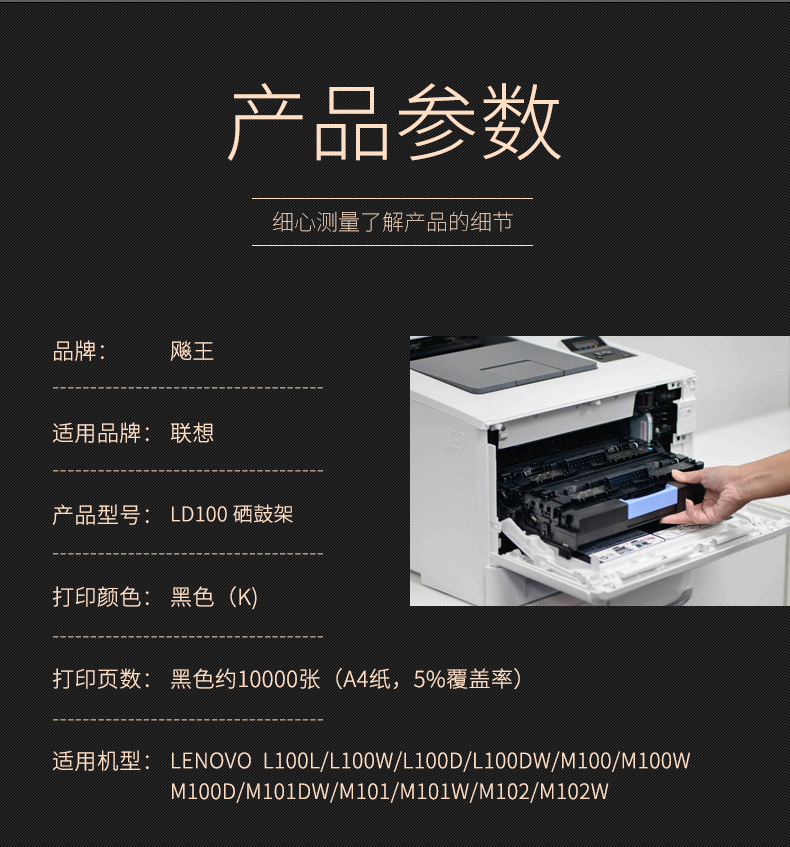 飚王 LD100 打印量10000页 适用联想L100/M100/M101/M102 硒鼓鼓架 (计价单位:只) 黑色