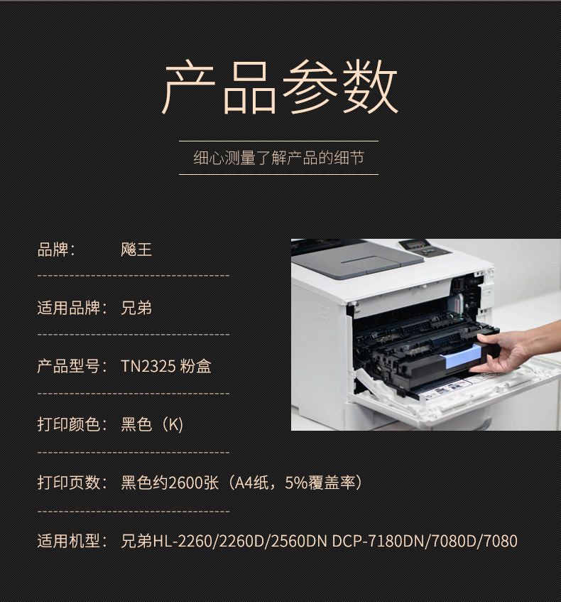 飚王 TN2325 打印量2600页 适用兄弟HL-2260/2260D/2560DN DCP-7180DN/7080D/7080 粉盒 (计价单位:只) 黑色