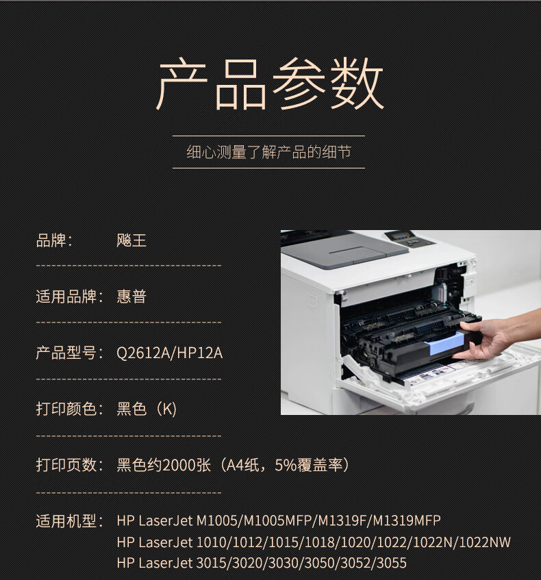 飚王 Q2612A 打印量2000页 适用惠普1020/1010/M1005/1018/1022/3055佳能303/FX9/LBP2900 硒鼓 (计价单位:只) 黑色