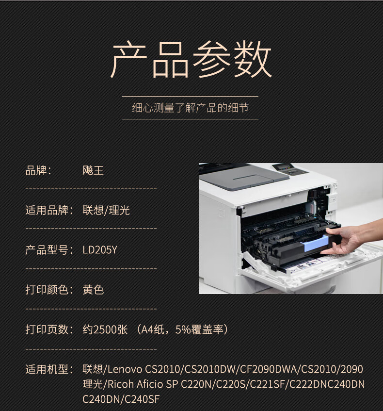 飚王 LD205Y 打印量2500页 适用联想CS2010/2090 硒鼓 (计价单位:只) 黄色