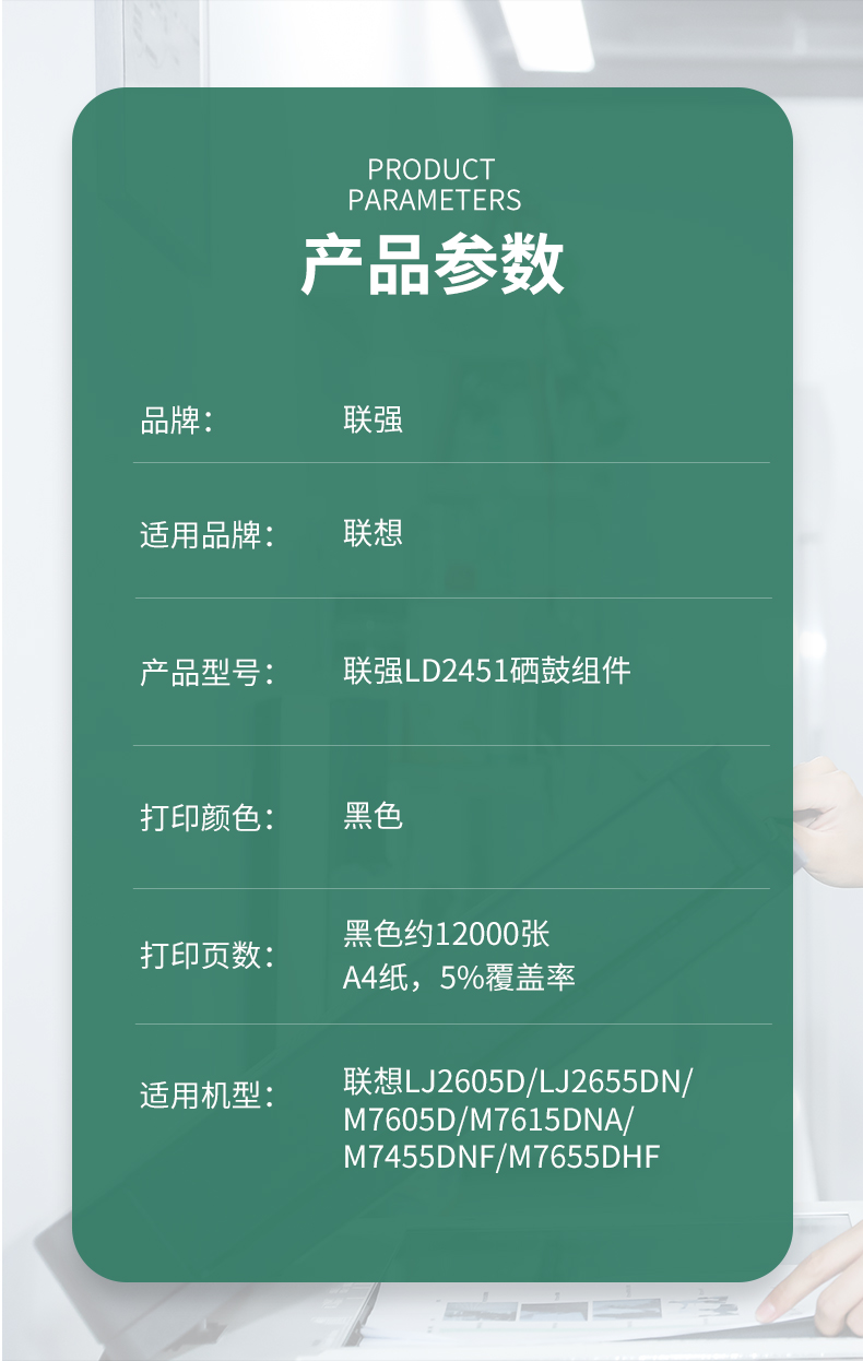 联强 LD2451 打印量约12000页 适用联想LJ2605D/LJ2655DN等 硒鼓组件 1.00 只/支 (计价单位:支) 黑色