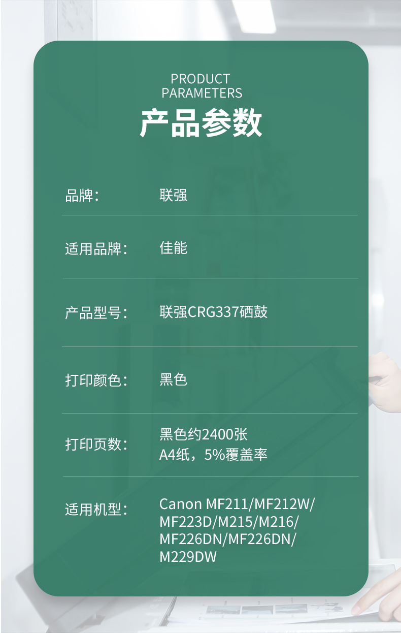 联强 CRG337 打印量约2400页 适用佳能MF243d/246dn等 硒鼓 1.00 只/支 (计价单位:支) 黑色