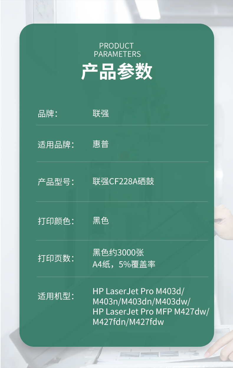 联强 CF228A 打印量约3000页 适用HP M403等 硒鼓 1.00 只/支 (计价单位:支) 黑色