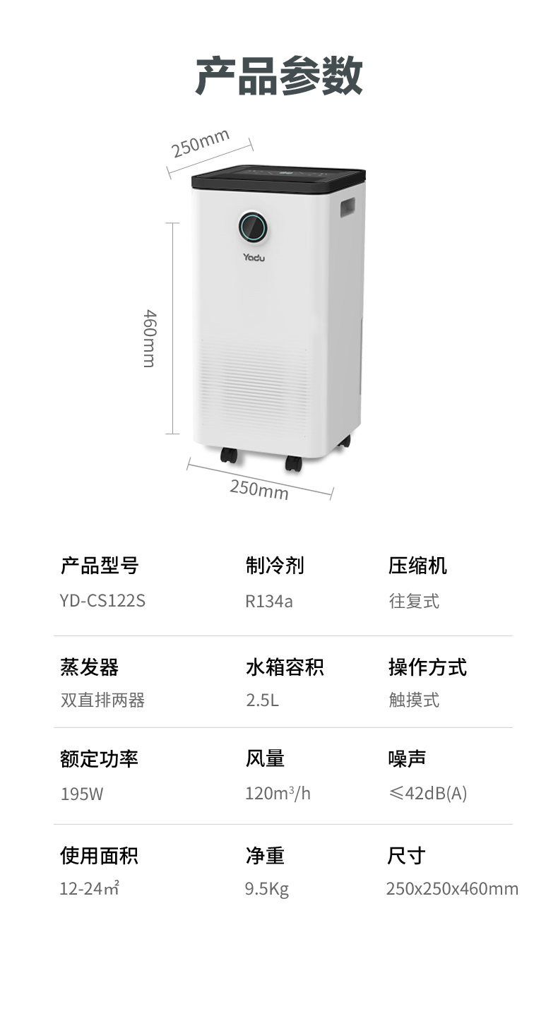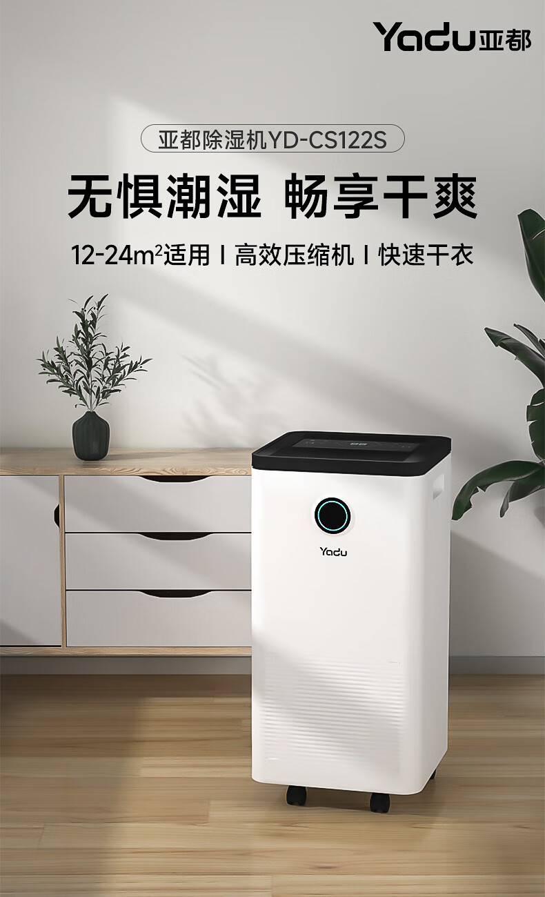亚都(YADU)除湿机除湿量12升地下室吸湿干衣功能滑屏调节除湿机 单位:台 白色