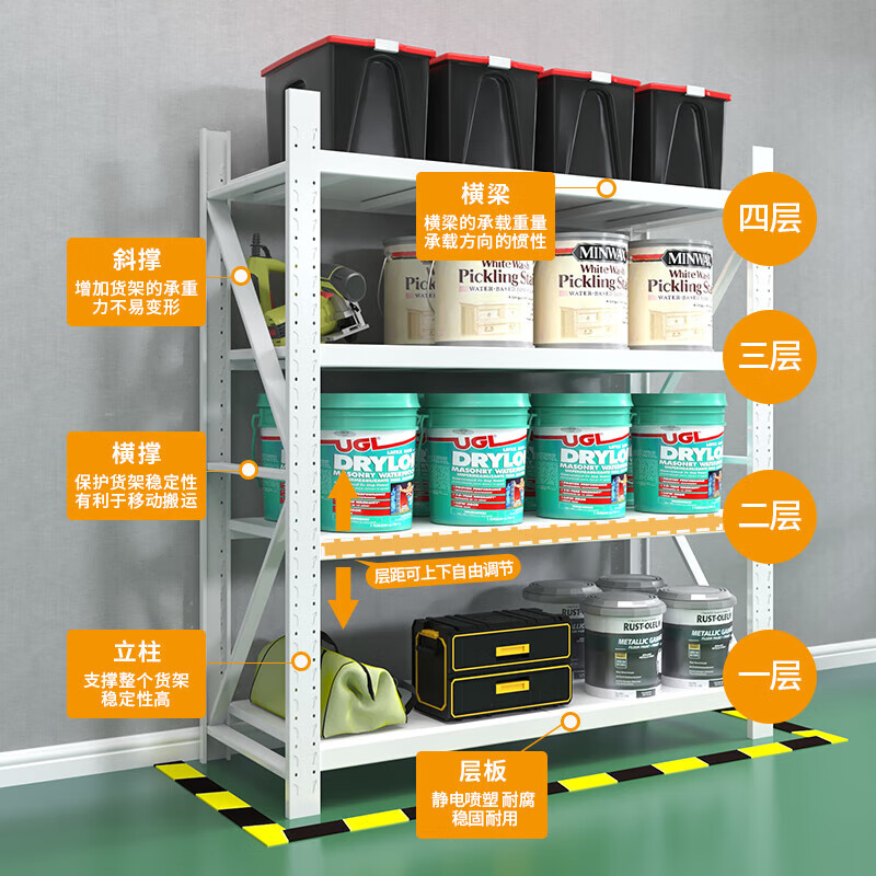 维仕蓝重型货架仓储货架重型厂房仓库货架-灰白色四层副架2000*500*3200mm每层承重1吨 张 浅灰色