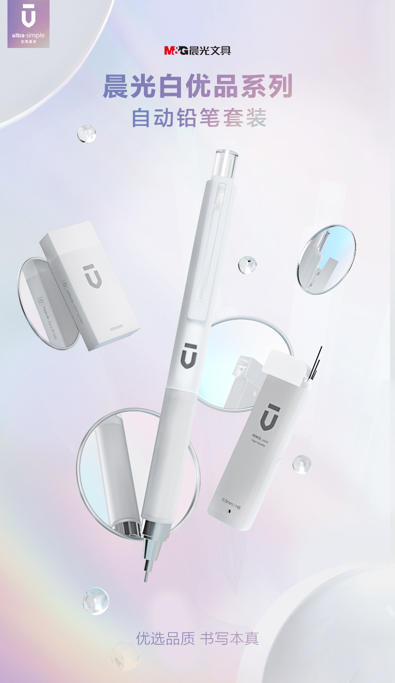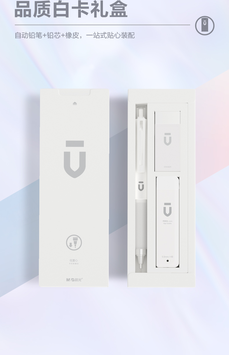 晨光(M&G)文具自动铅笔三件套0.5mm(铅笔+HB铅芯+少屑橡皮)学生考试礼盒HAMP1614 白色