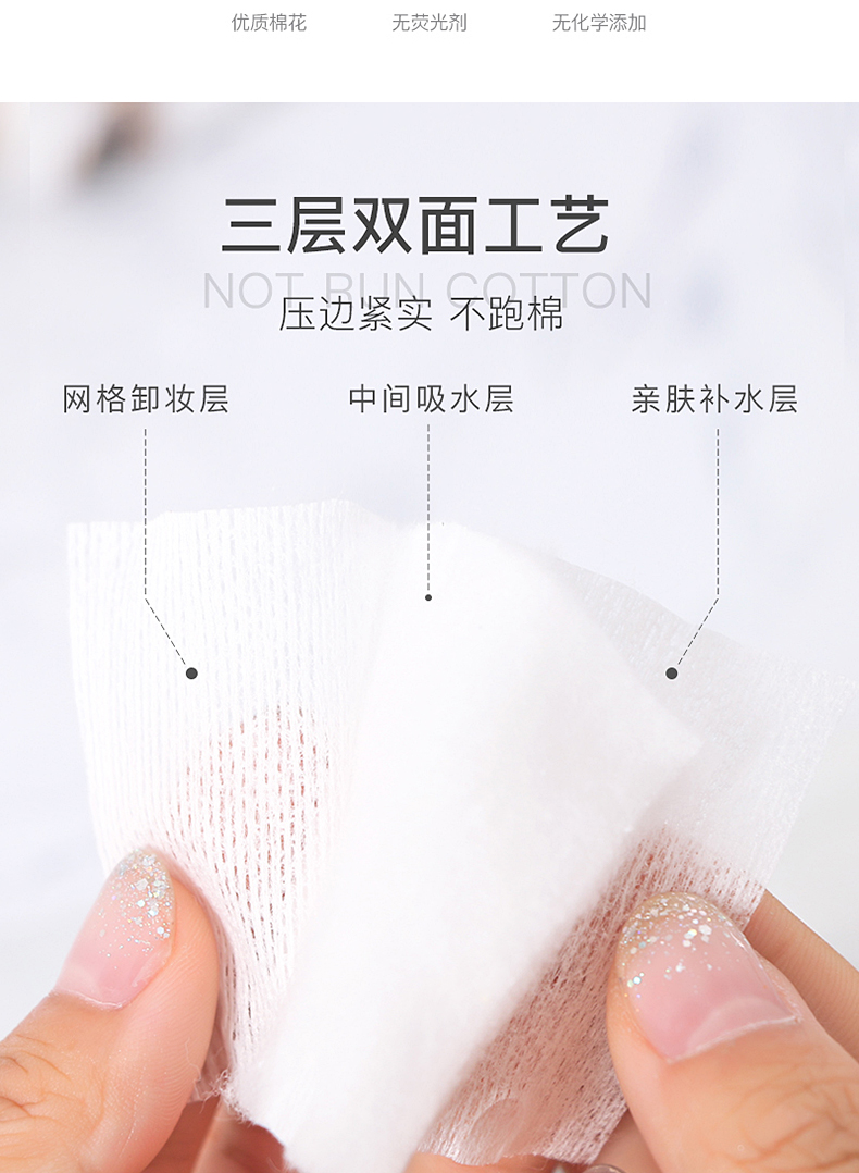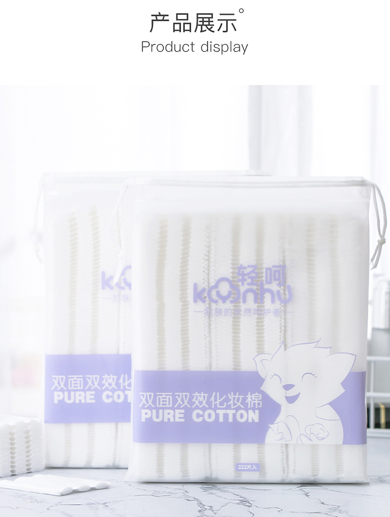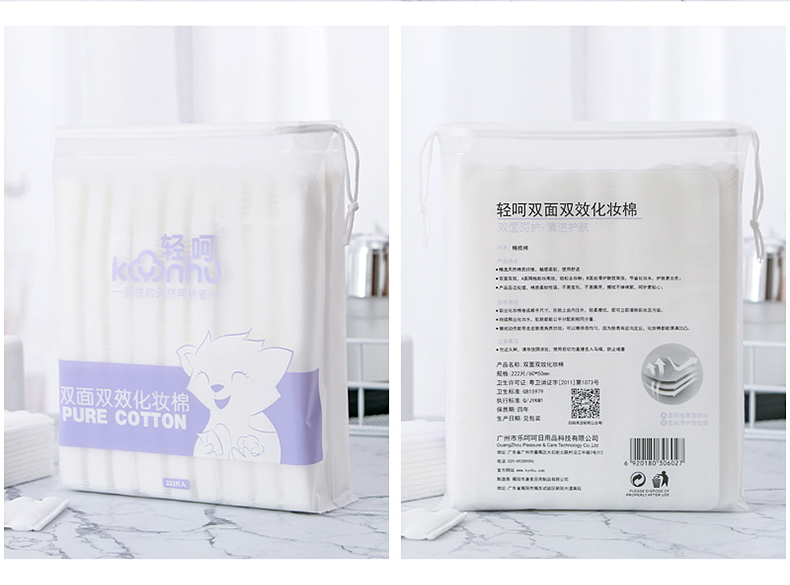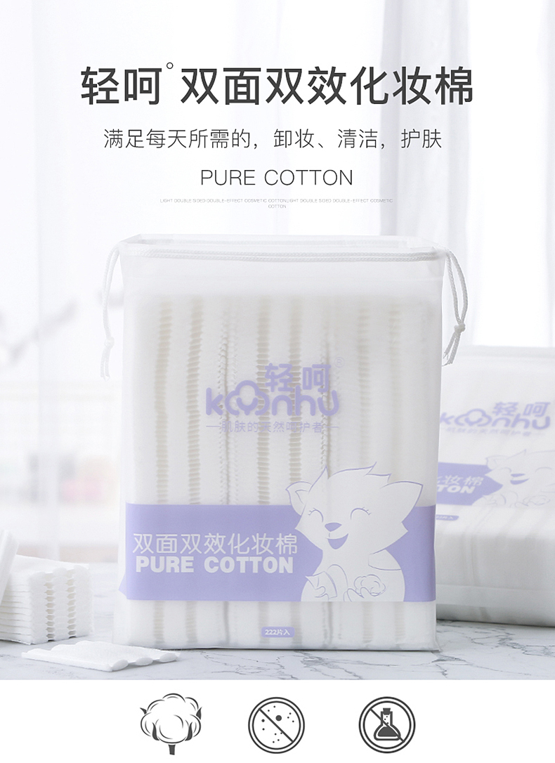 轻呵 双面双效化妆棉-222片,厚款,(棉+植物纤维)HZ-222-D-02 单位:袋 白色