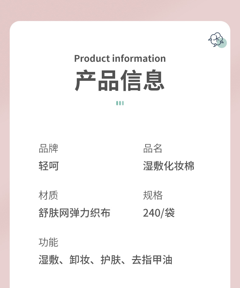 轻呵可拉伸湿敷棉-240片(植物纤维)HZ-240-D 单位:袋 白色