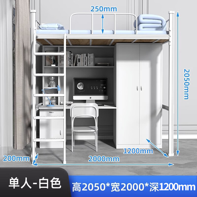 维仕蓝 公寓床上床下桌组合床宿舍铁架床 1.2米宽灰白色上床下桌-送床板 单位:张 白色