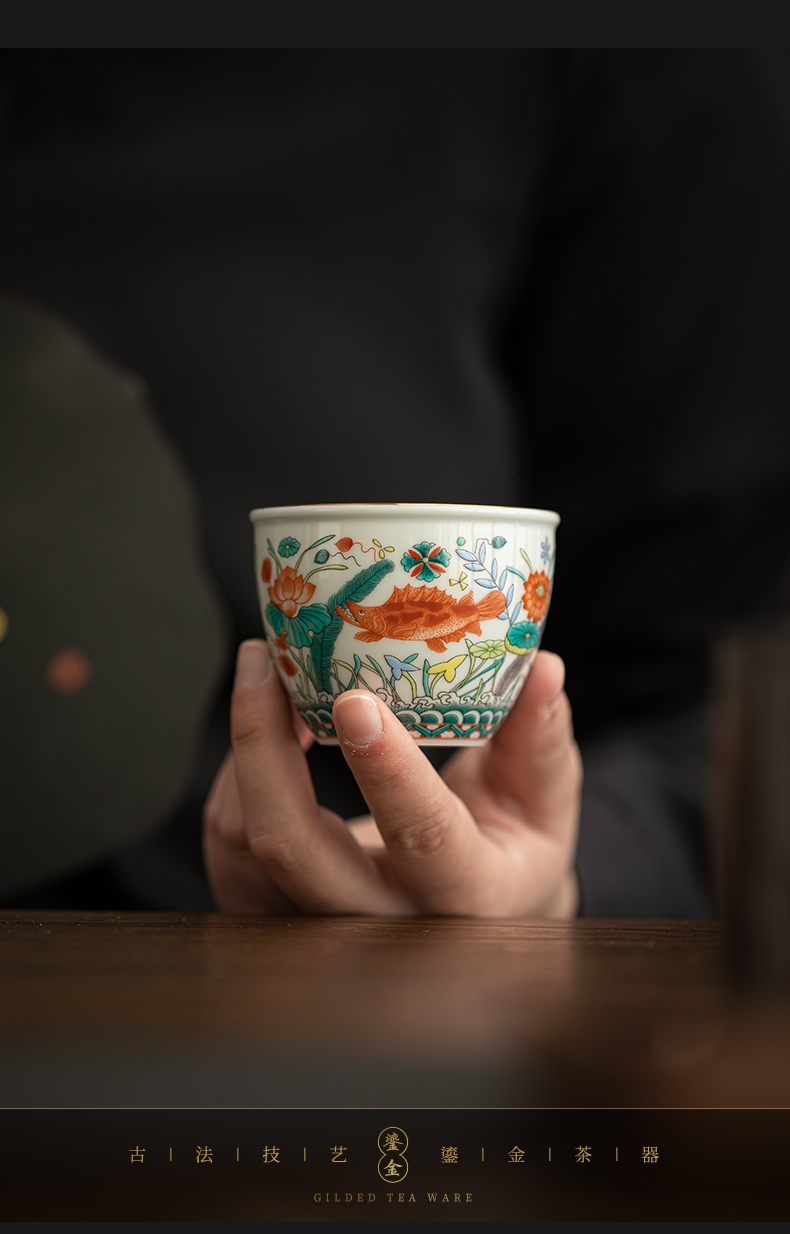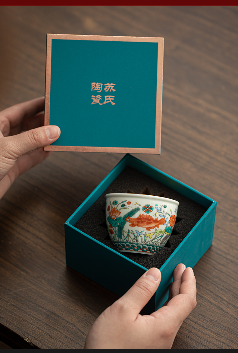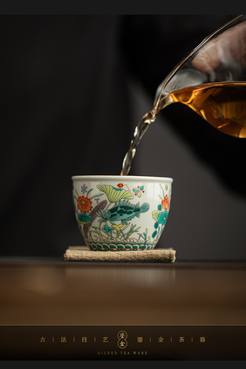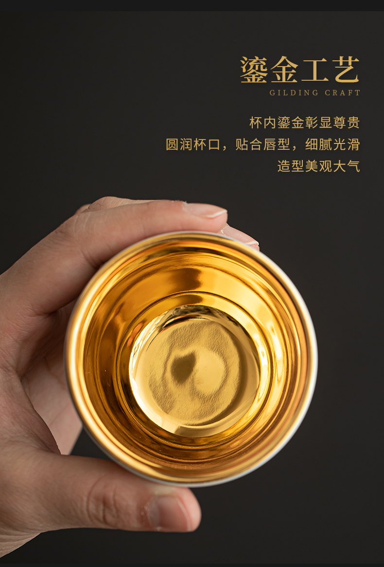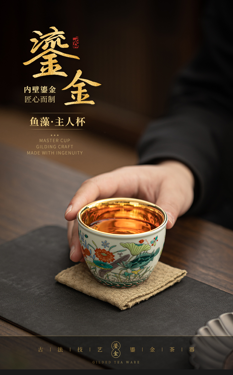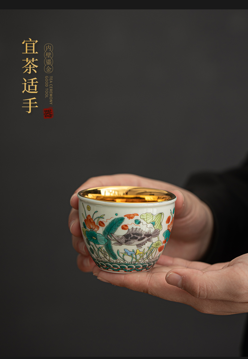 苏氏陶瓷(SUSHI CERAMICS)J0849鱼藻杯内部鎏金茶杯非遗传承人陈国再作品(单位:个) 白色