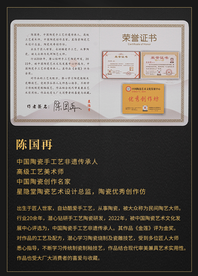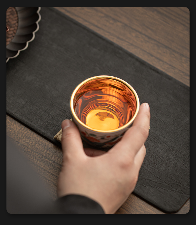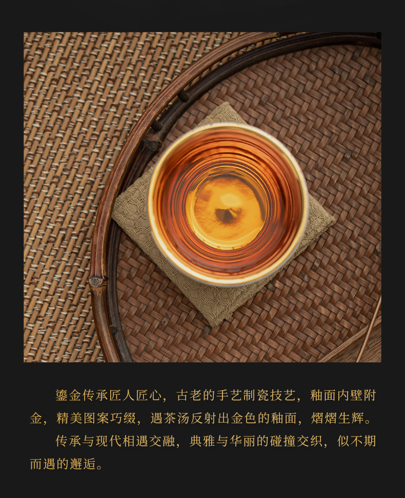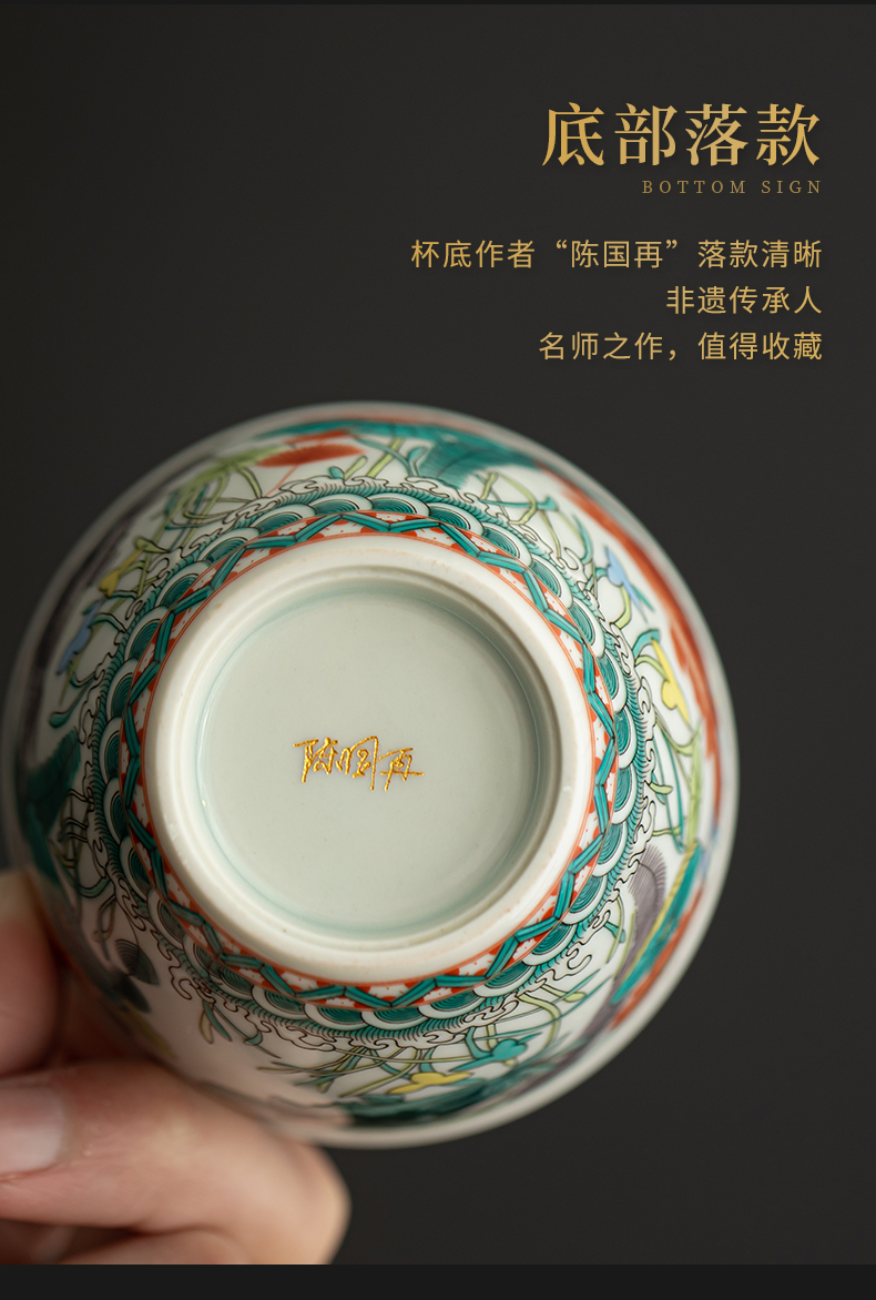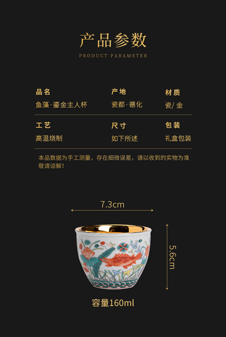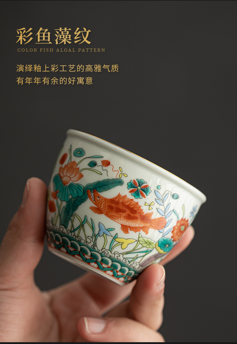 苏氏陶瓷(SUSHI CERAMICS)J0849鱼藻杯内部鎏金茶杯非遗传承人陈国再作品(单位:个) 白色