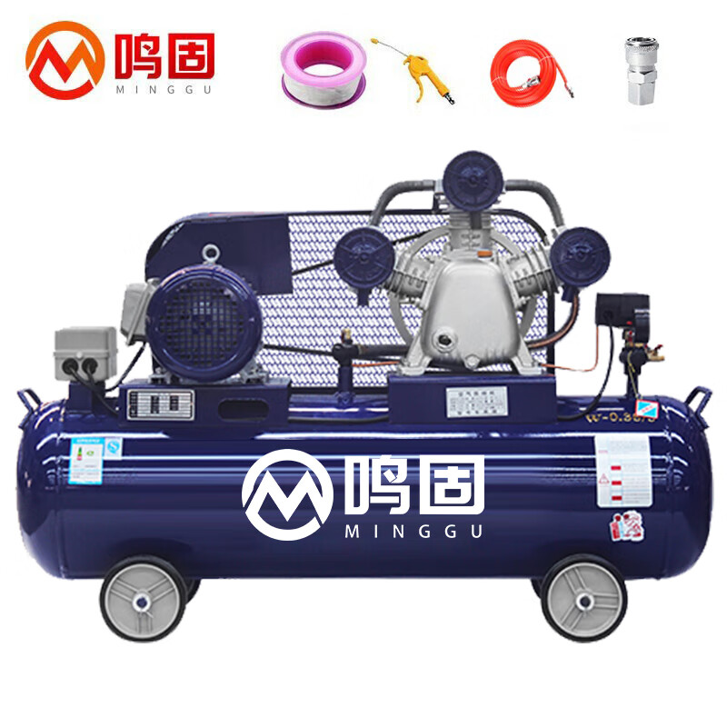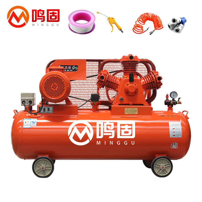 鸣固空压机皮带式7.5KW工业级大型喷漆气泵380V空气压缩机 W-0.9/8(单位:台) 灰橙色