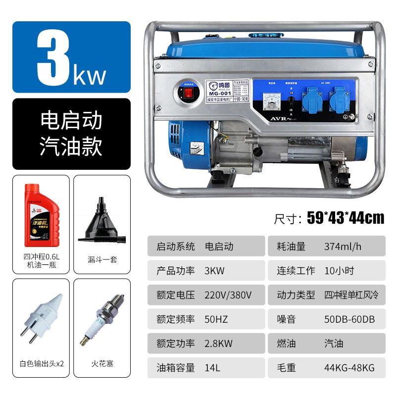 鸣固汽油发电机3kw单相220V家用小型户外低噪电机组应急便携式 电启动(单位:台) 蓝色