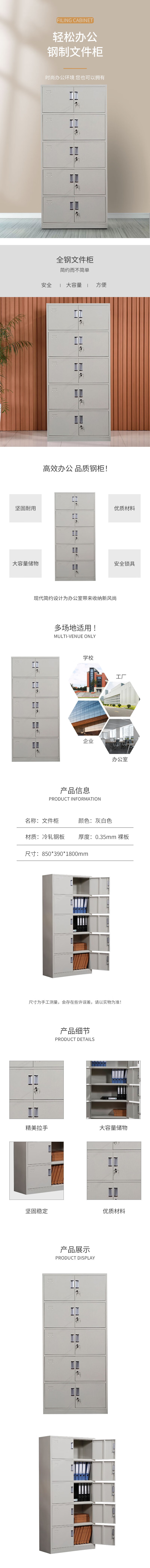 荣美盛 文件柜通体五节柜铁皮柜/个 850*390*1800mm