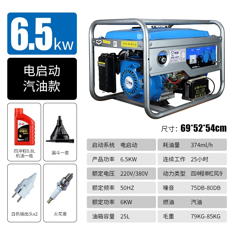 鸣固汽油发电机6.5kw单相220V家用小型低噪发电机组应急便携电启动(单位:台) 蓝色