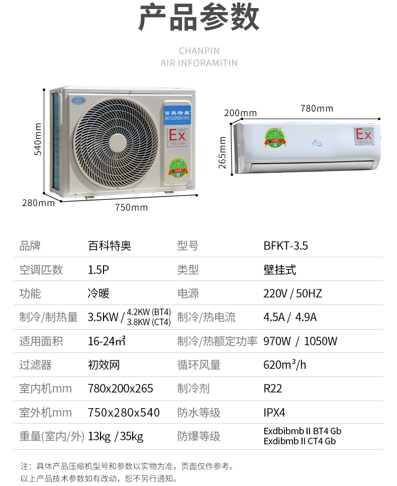 百科特奥(ENCYCLOPEDIA THEO) BFKT-3.5 1.5匹防爆挂式空调 单位:套 白色