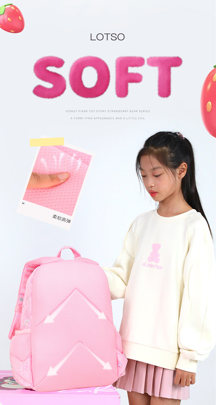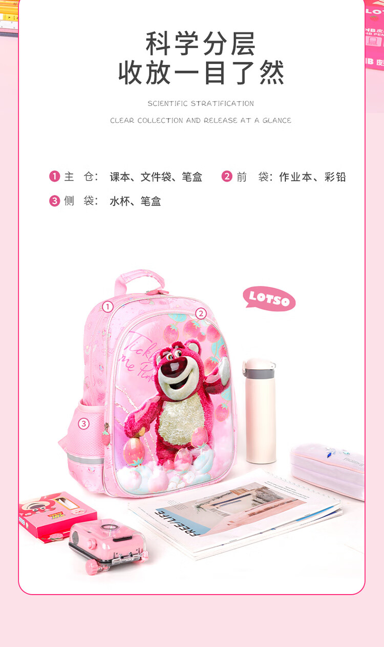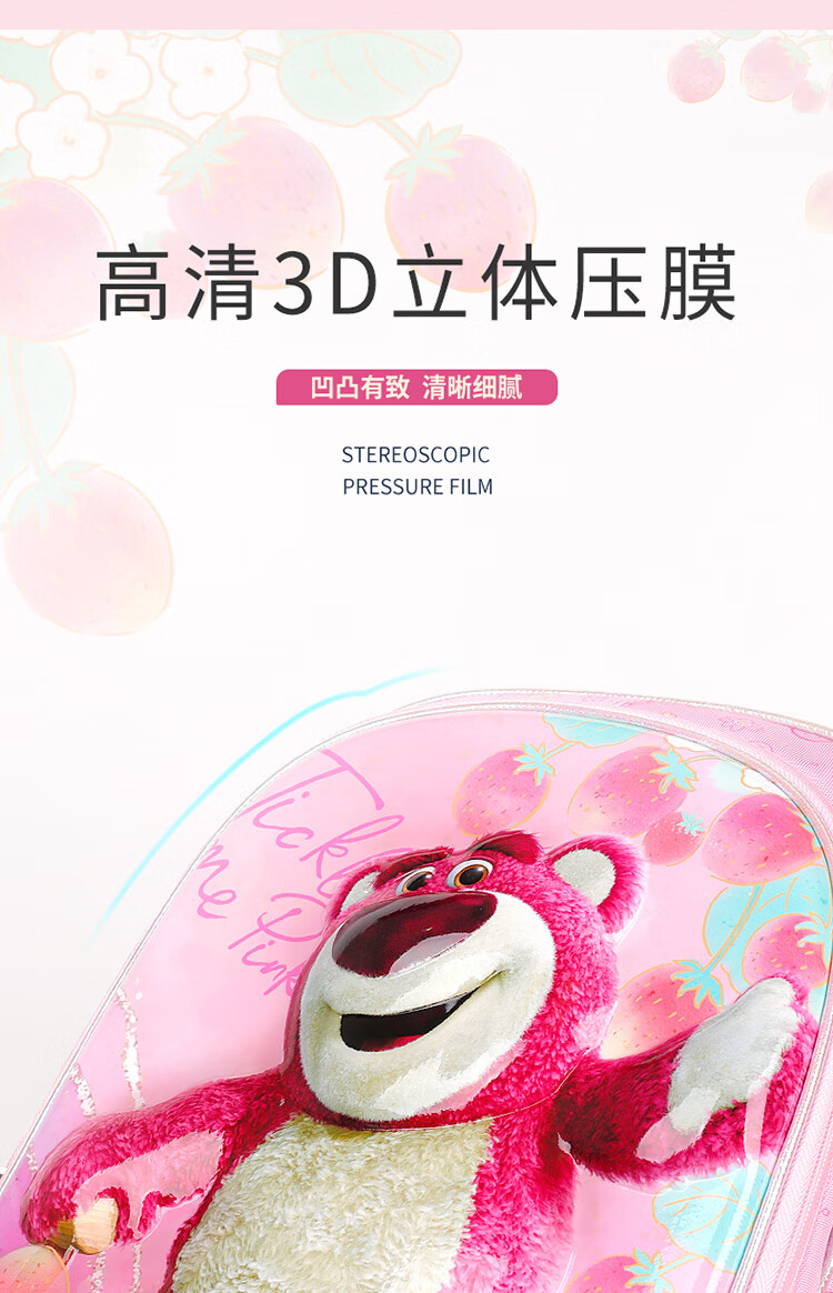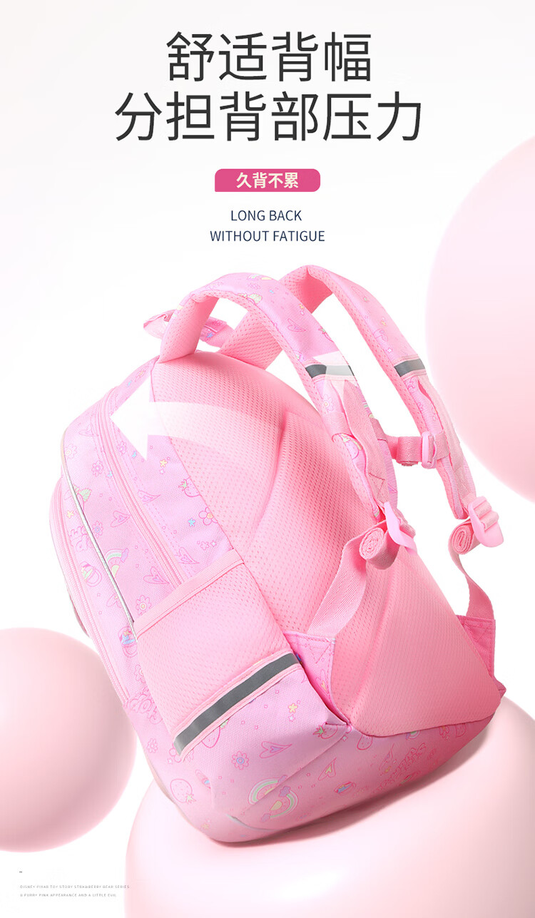 迪士尼(disney)小学生书包 1-3年级大容量高清压膜防泼水双肩包草莓熊B26047-T1X 个 粉色