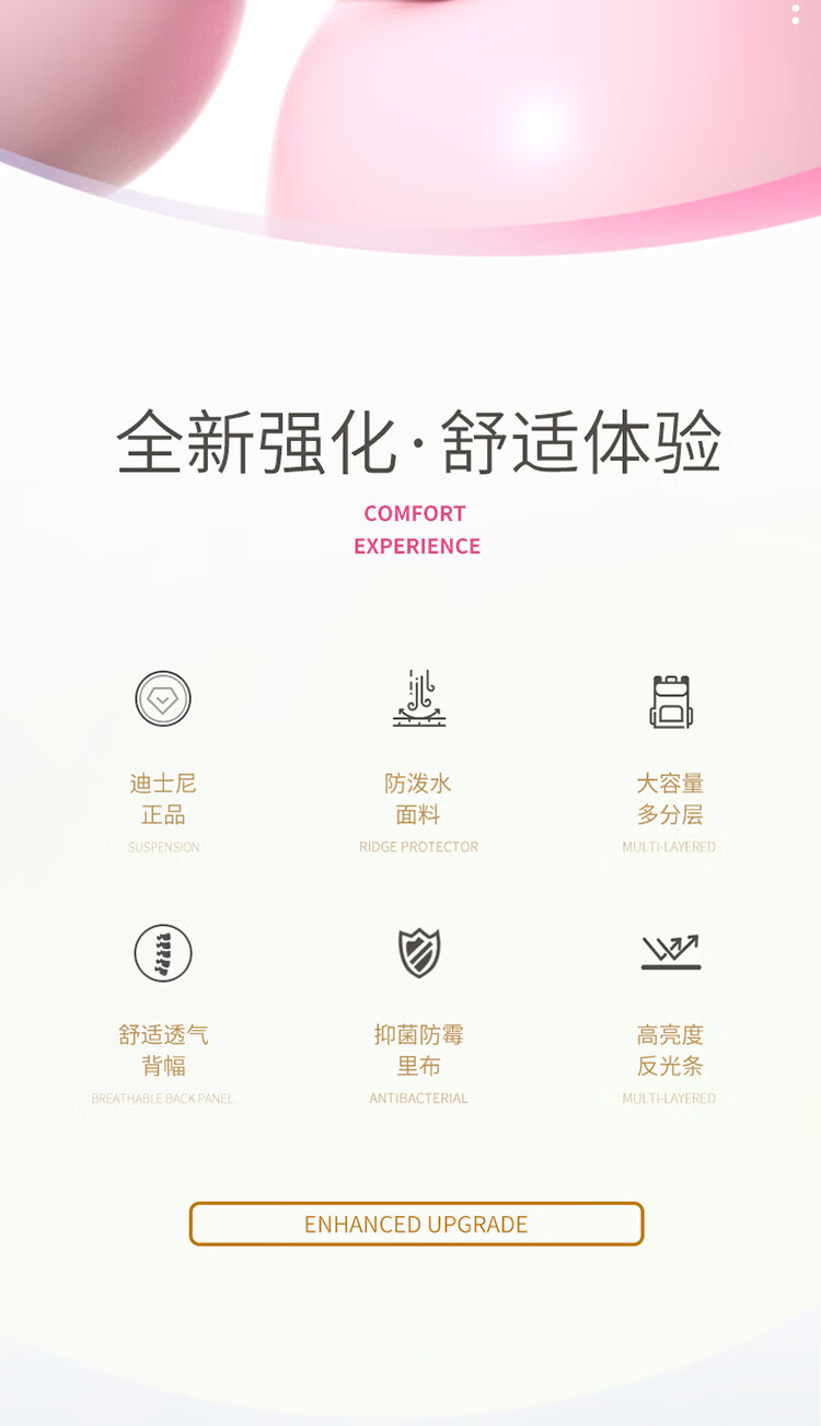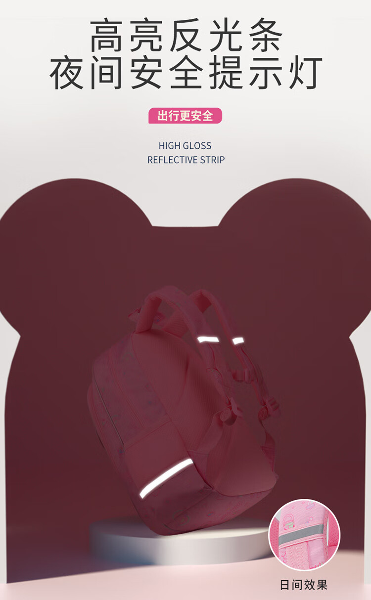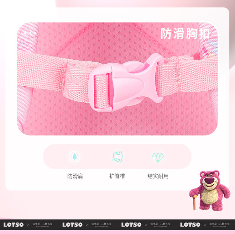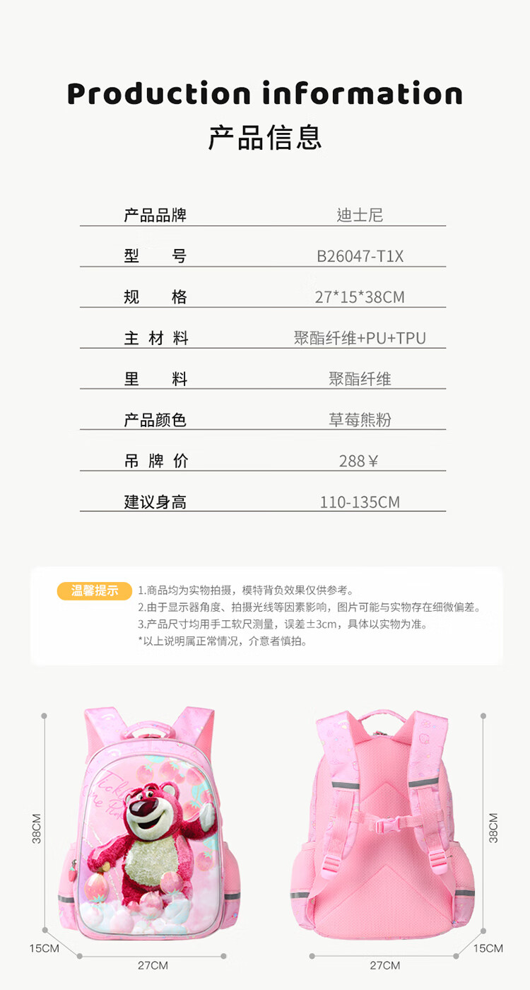 迪士尼(disney)小学生书包 1-3年级大容量高清压膜防泼水双肩包草莓熊B26047-T1X 个 粉色