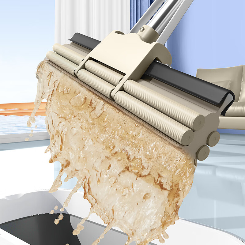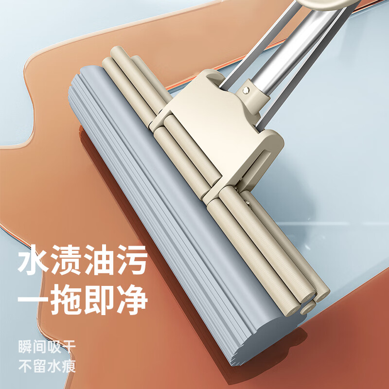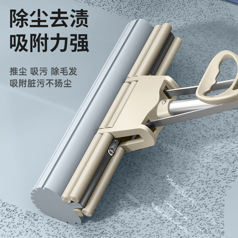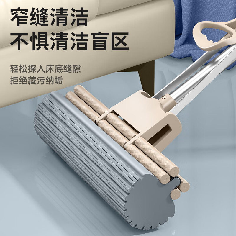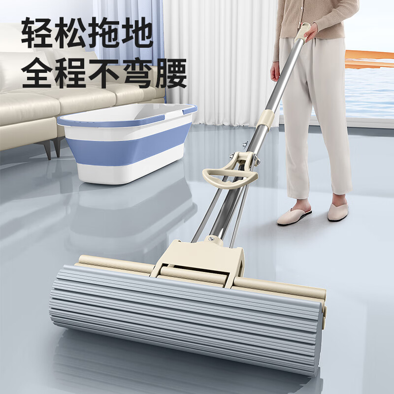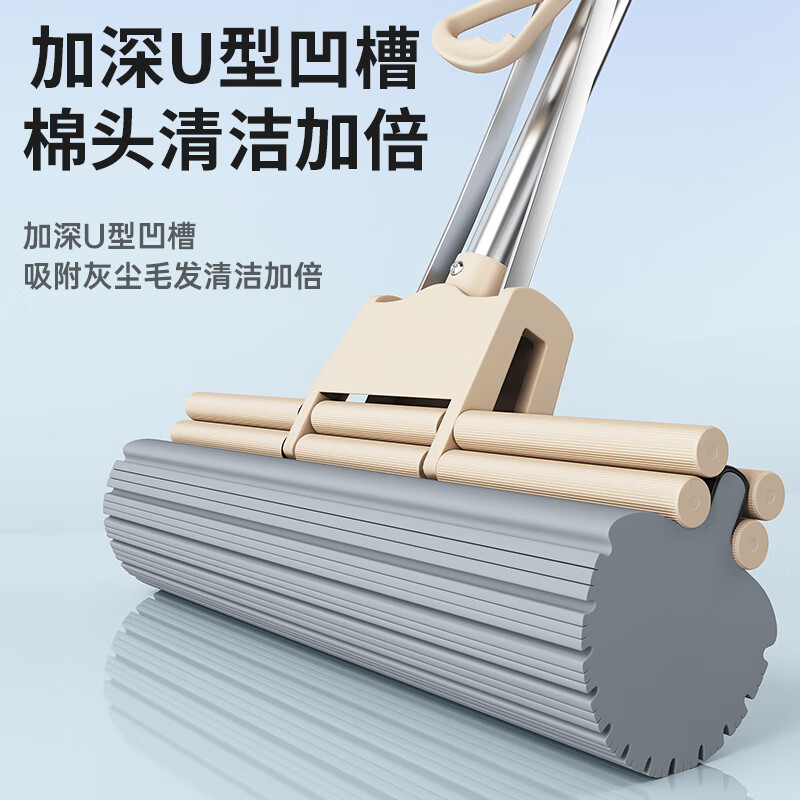 尔蓝 33cm免手洗滚轮海绵拖把吸水墩布懒人胶棉拖布干湿两用AL-JM15 单位:套 象牙色