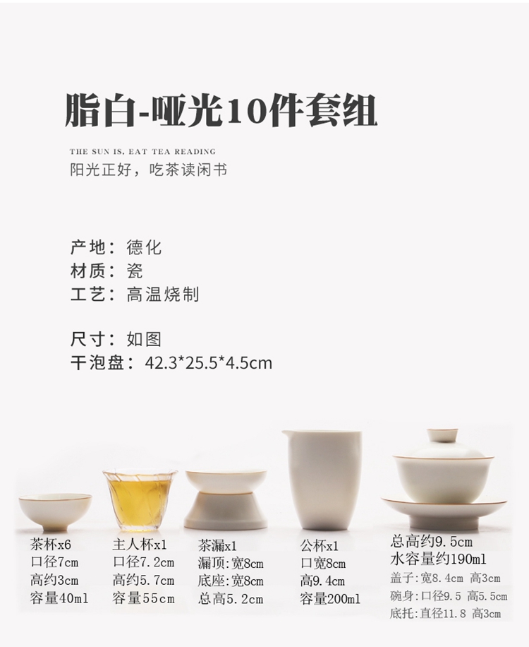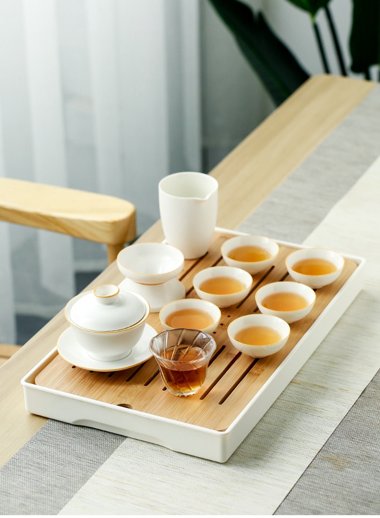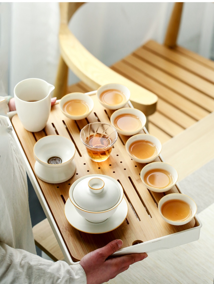 苏氏陶瓷(SUSHI CERAMICS)J0139白瓷简约功夫茶具带干泡茶盘套组(单位:套) 白色