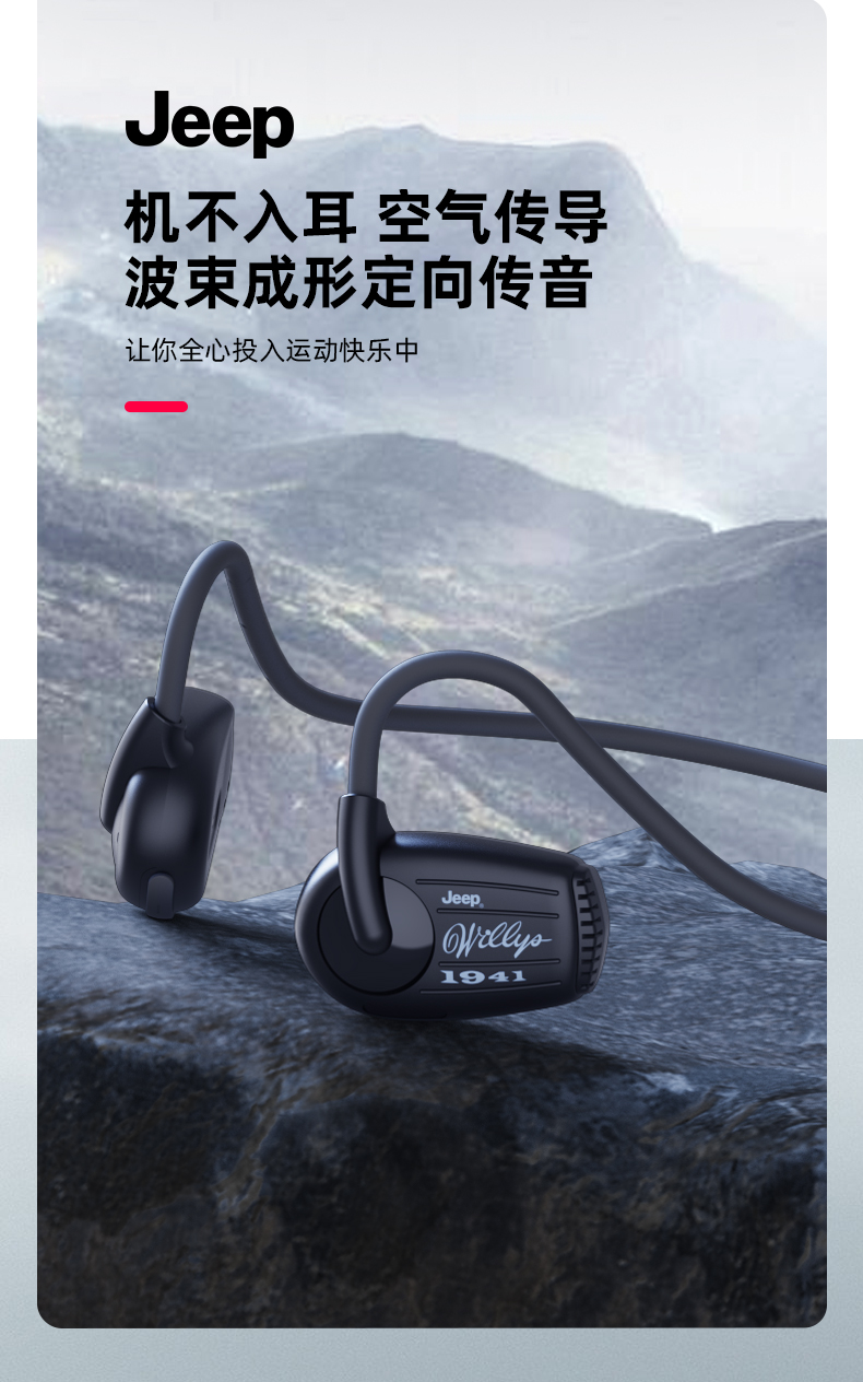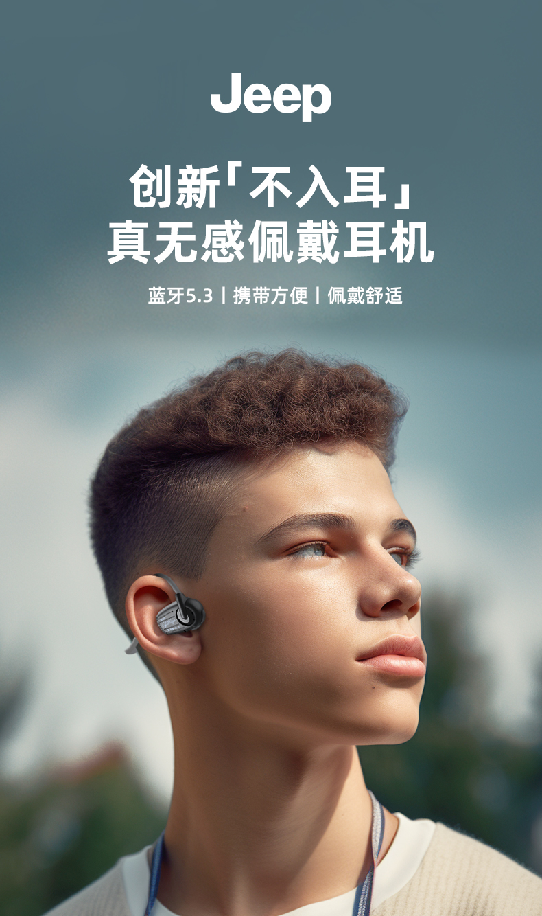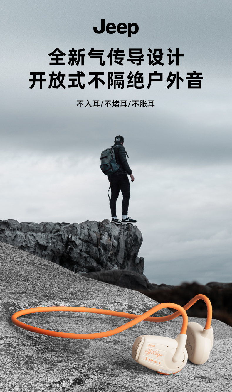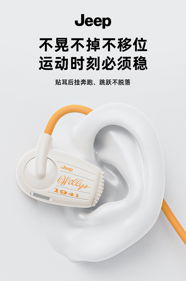 Jeep吉普 真无线蓝牙耳机气传导挂耳式 运动跑步骑行高清通话降噪耳机 防水防汗超长续航 单位:副 米白