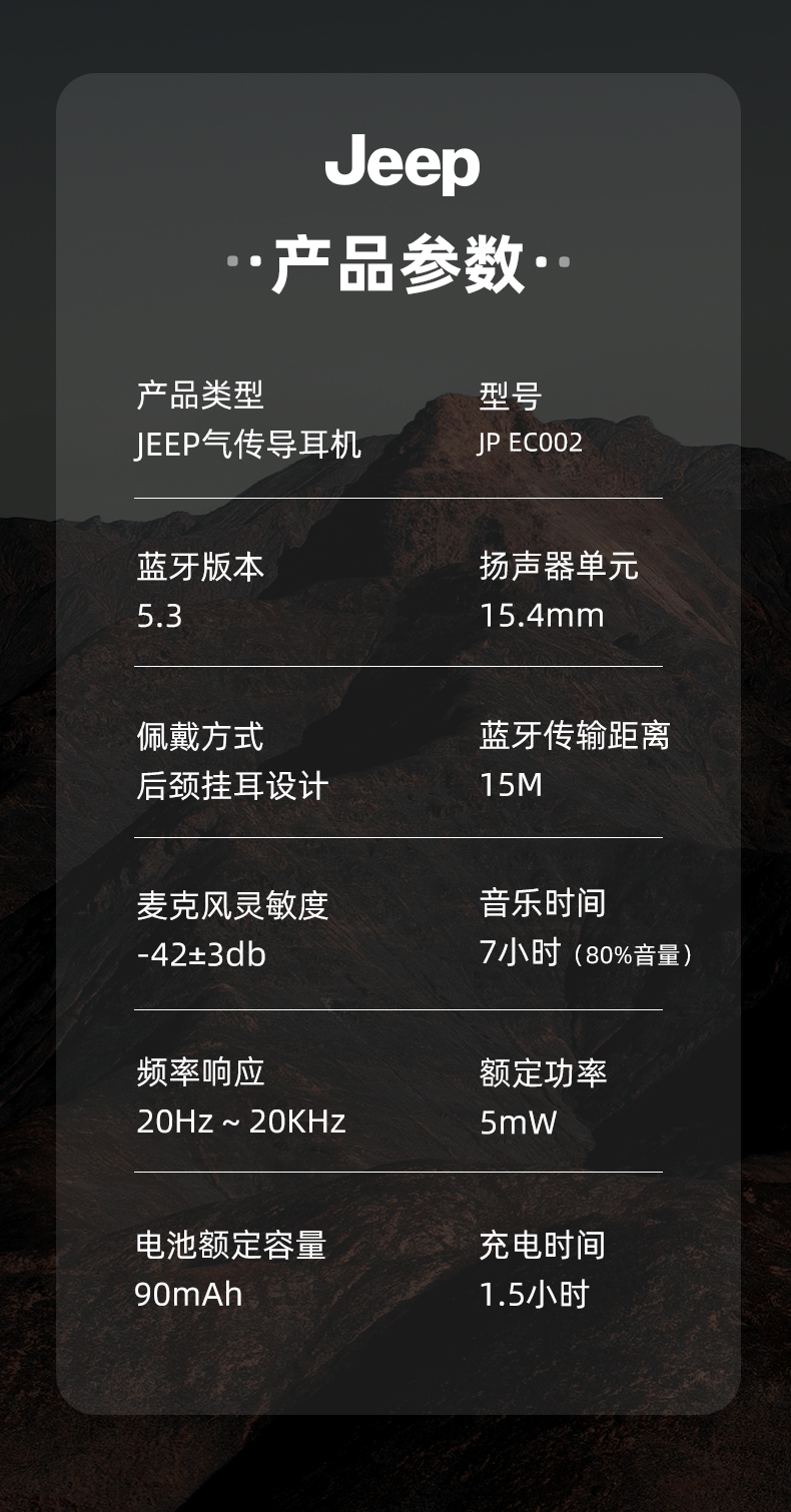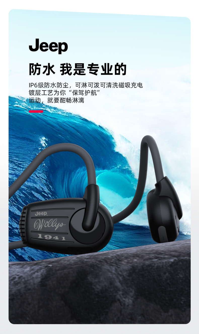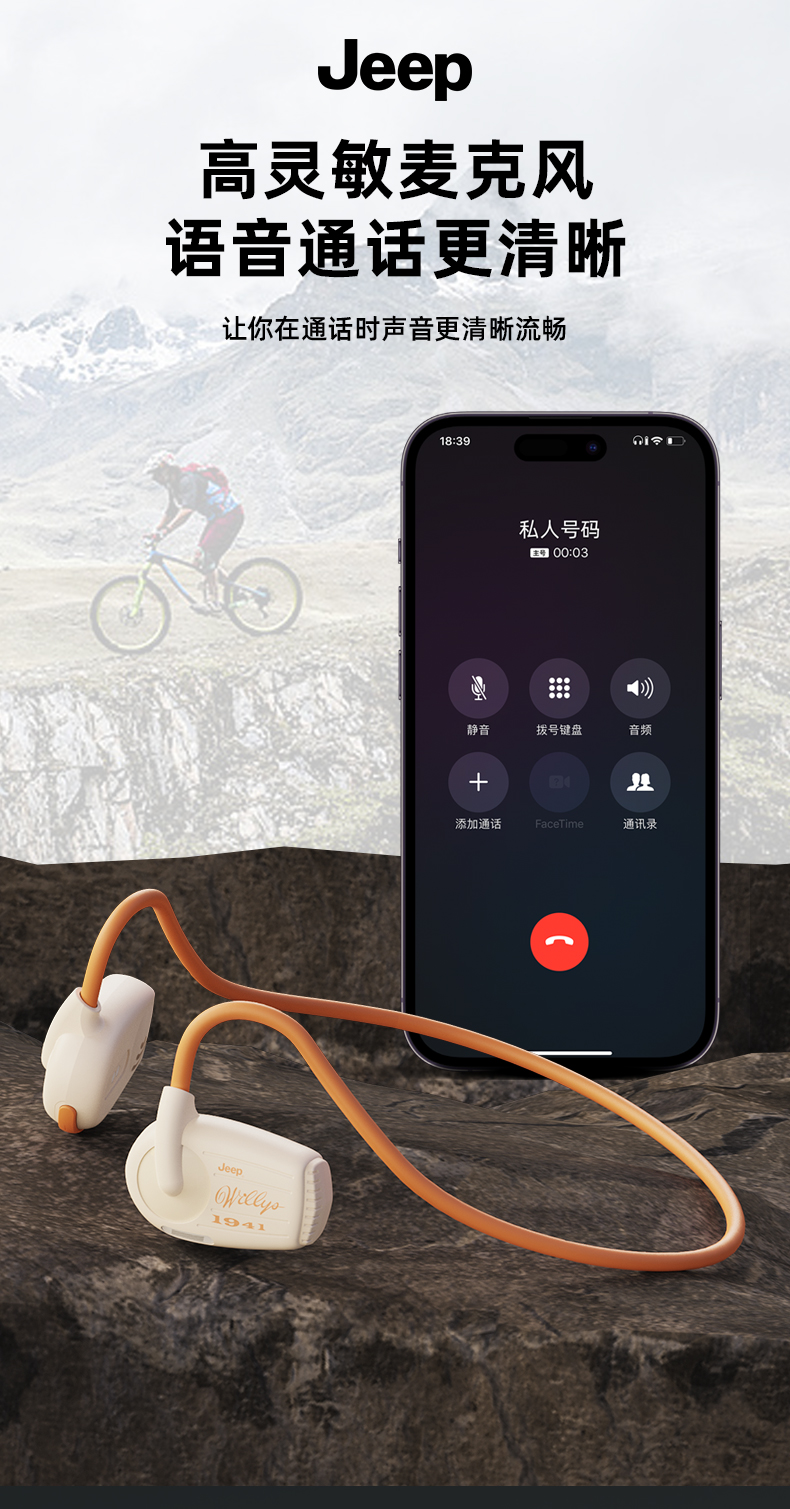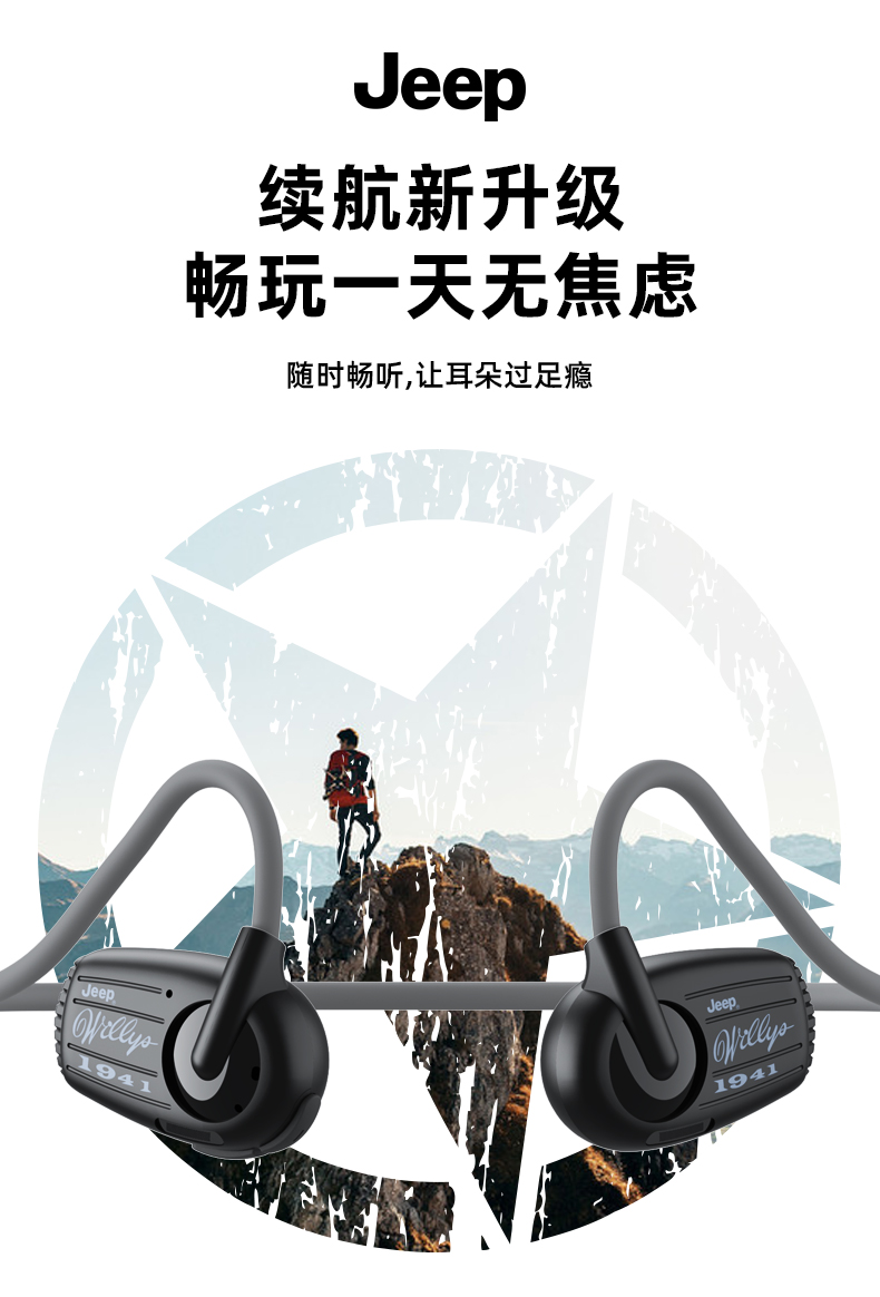Jeep吉普 真无线蓝牙耳机气传导挂耳式 运动跑步骑行高清通话降噪耳机 防水防汗超长续航 单位:副 米白
